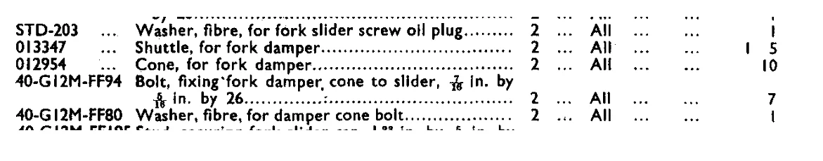 Surprisingly the early war dept Matchless forks had piston dampers but 1948 to 1950 forks do not.