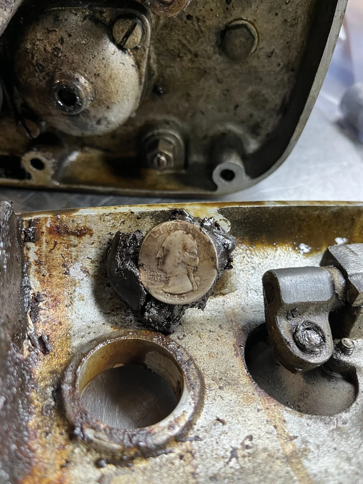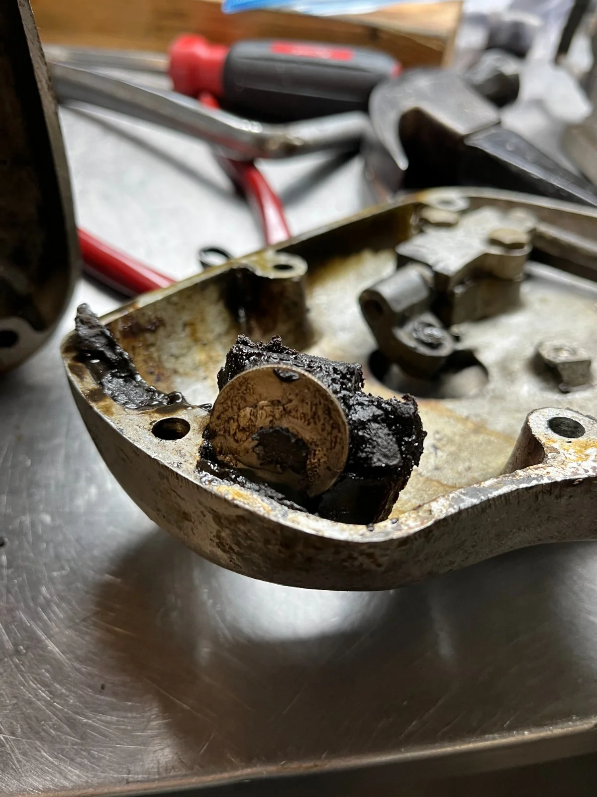 I've already taken most of the motor apart just to see it's condition, it looks good so far but I'm having trouble getting the crank out of the case drive side? I have used heat to the case and tapped with a mallet a few times, probably needs more heat and a little better wack?? Look what I found in the outer cover of the gearbox lol who knows how that got in there.