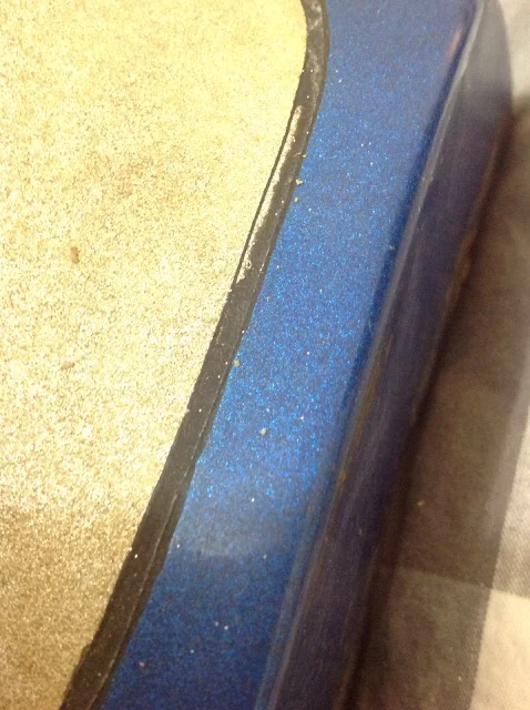 I've seen lots of tanks like this - the gelcoat is really thin on top of the flakes, so after some serious polishing or rubbing down the flakes break through and turn silver (they're just dyed aluminium). Looks ugly