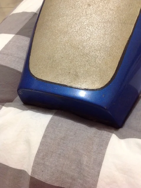 Pretty sure it's factory finish. I have scratched a bit of the finish off and there doesn't seem to be any other colours underneath. Is the gel coat normally on the under side as well? You can see in the picture where the seat has worn off the blue to the silver flake under. Have never seen another bike finished the same but a few with the red and silver. Any help would be appreciated. Of course there is no way to know if it's original to this bike.
