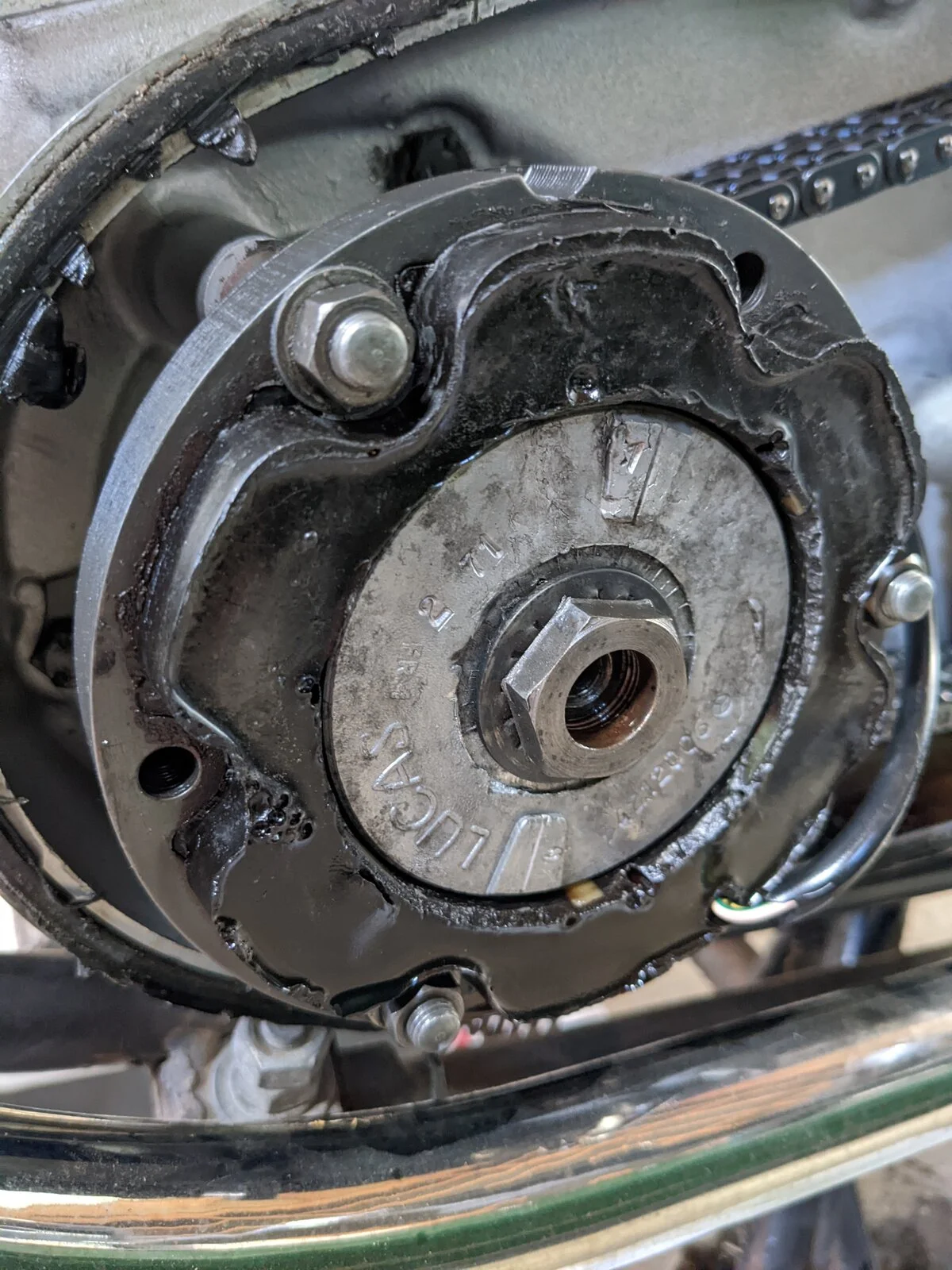 Ummmmmm chain roller bits in the primary CHAIN case... Now where could THOSE be from?