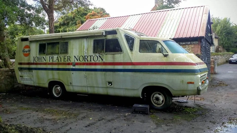 "These were built by the Rectrans subsidiary of the White Corporation, atop the industrial Dodge M300 chassis. The design mandate, which fell to Larry Shinoda of Corvette Sting Ray, Chevy Z28 Camaro and Boss 302 Mustang fame, was for a streamlined RV capable of more than 10mpg. Wind tunnel testing aided in a final figure of 10.1mpg with a top speed of more than 100mph. Power is from a Dodge 413 backed by a 727 Torqueflite auto".