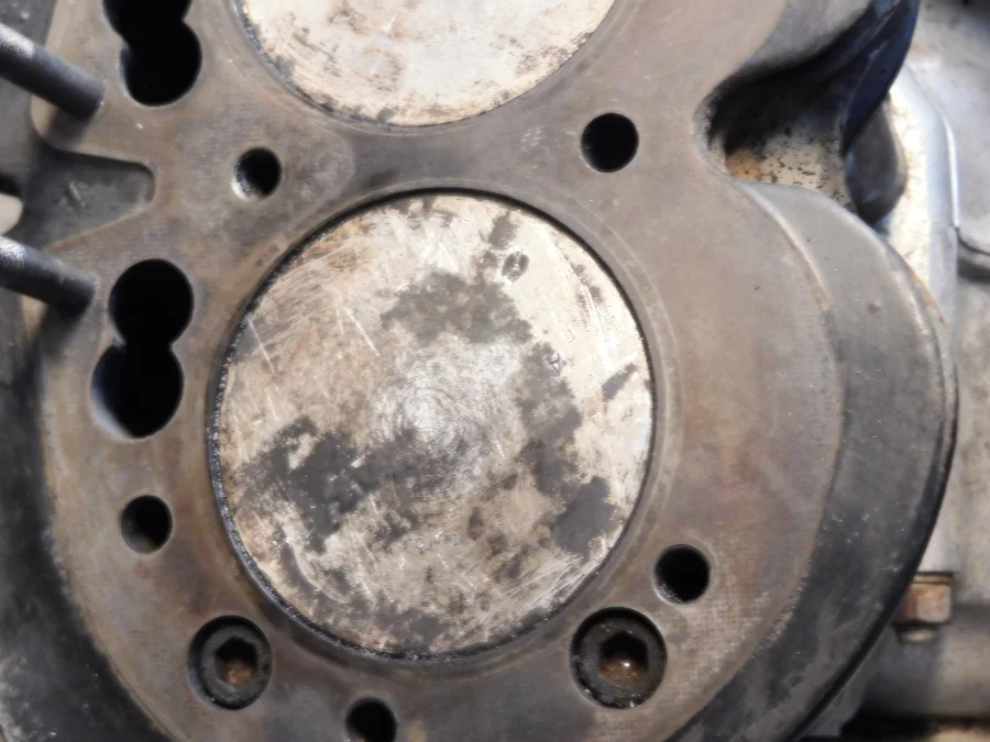 What I didn't expect to find was a divot in the left piston. It doesn't appear that a valve kissed the piston but looks like either a casting flaw which I doubt or for some reason a hot spot on the crown. Going to try and post a picture of two and matbe someone can give me a idea as to what is going on.