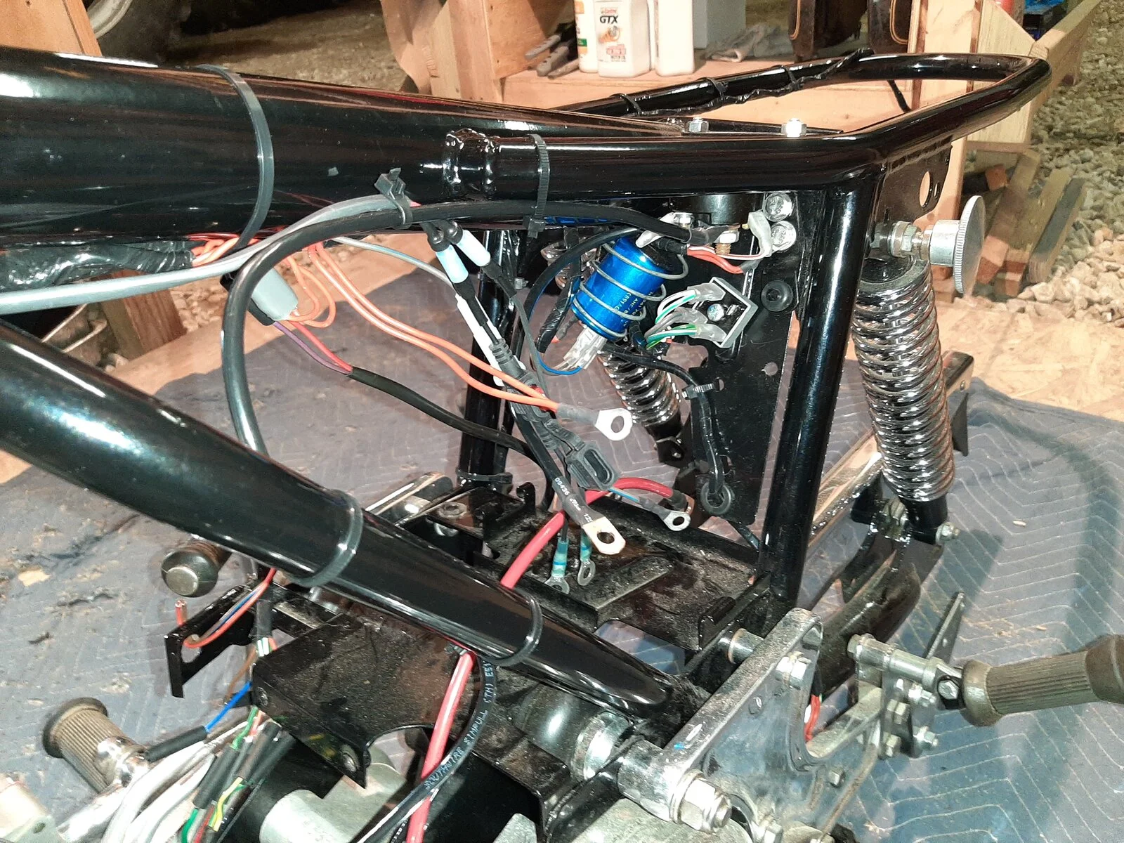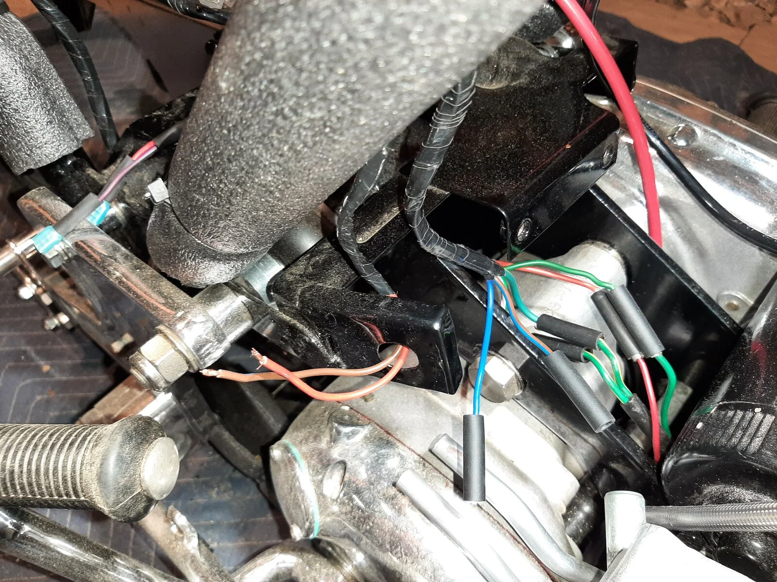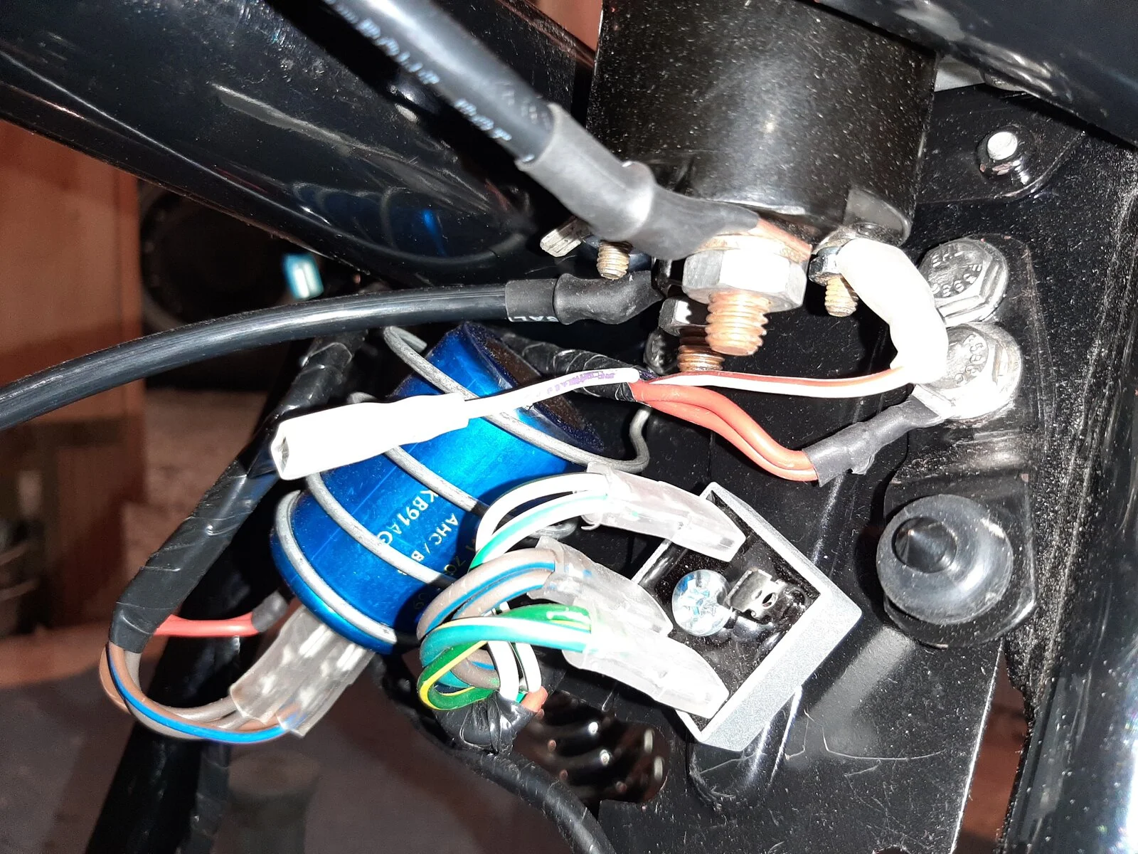 I strongly suggest you do not fit the double red harness positive ring terminal to the battery although it is shown on the factory wiring diagram as it is an electrical error to have a light-gauge harness wire connection when there is a working starter motor because the starter current could potentially burn out the wire so better to leave it disconnected and tape it up.