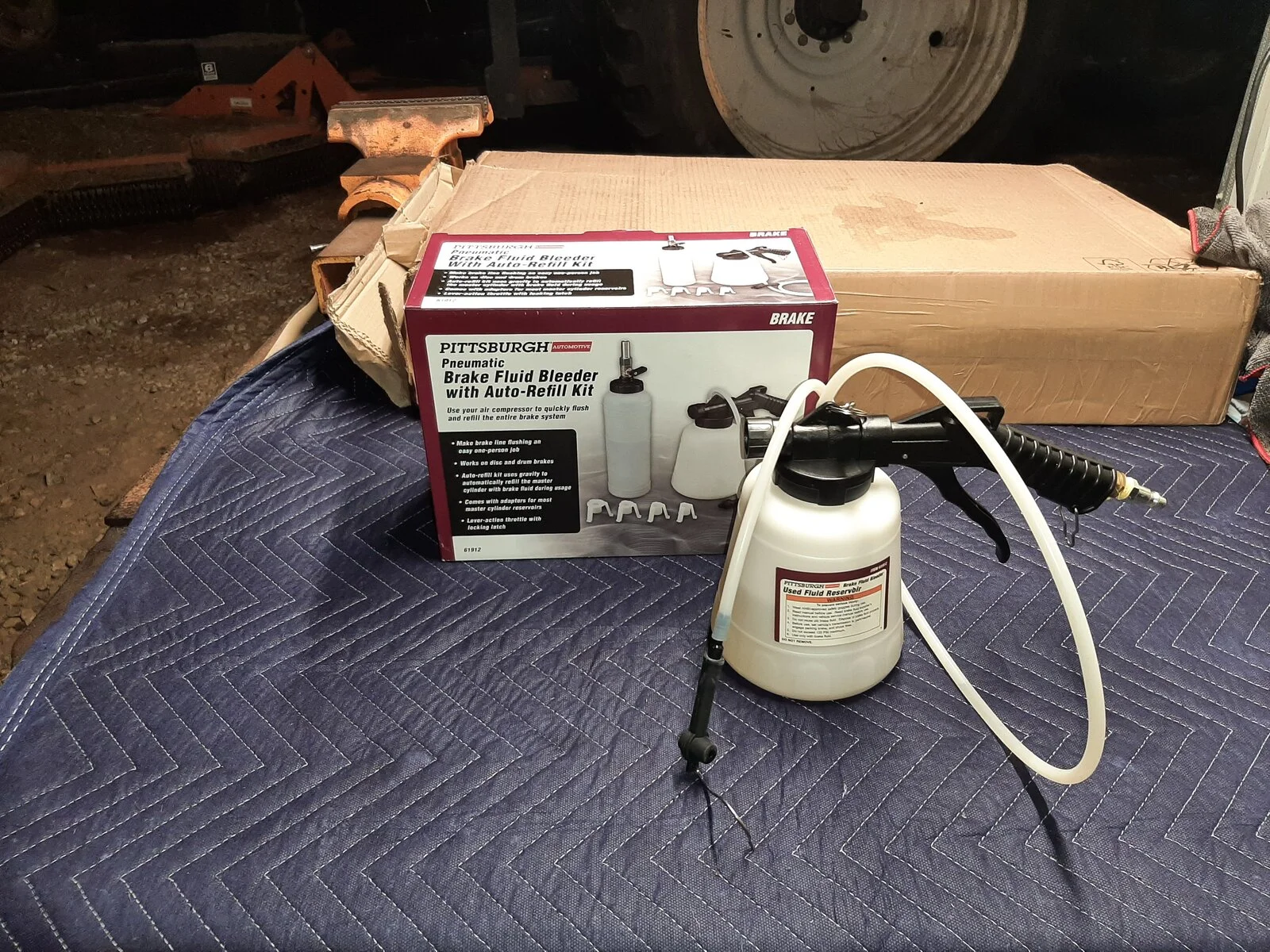 I used this inexpensive pneumatic brake bleeder from Harbor Freight. It worked great. Basically you attach the suction tubing to the bleed nipple, using 90 psi air you pull the trigger, open the bleed nipple and vacuum brake fluid from the resivour and the air that is in the system. The main thing is to keep the resivour full so you don't pull in any air. Just keep on pulling fluid through and then do it some more. Solid pedal and lever.