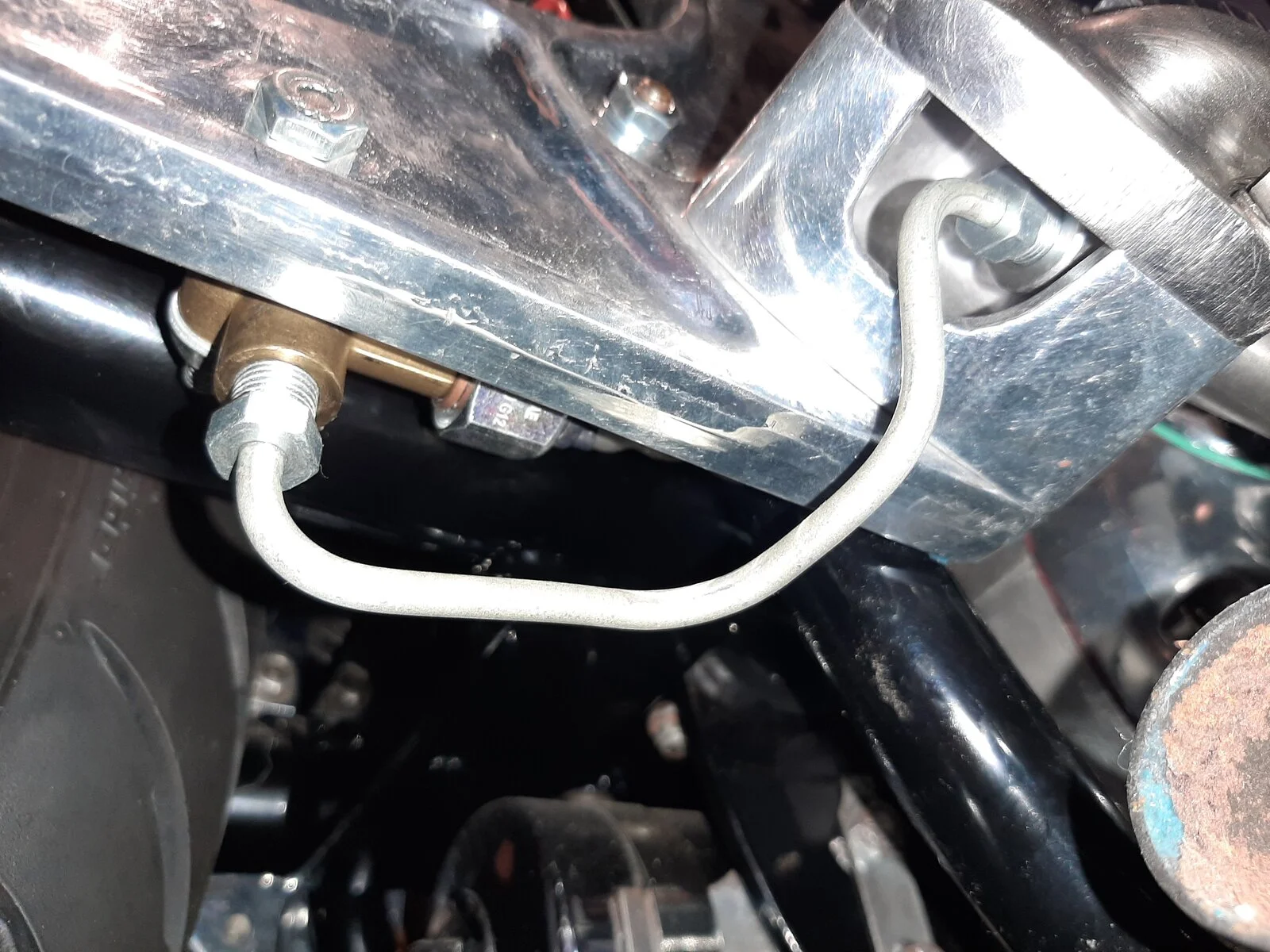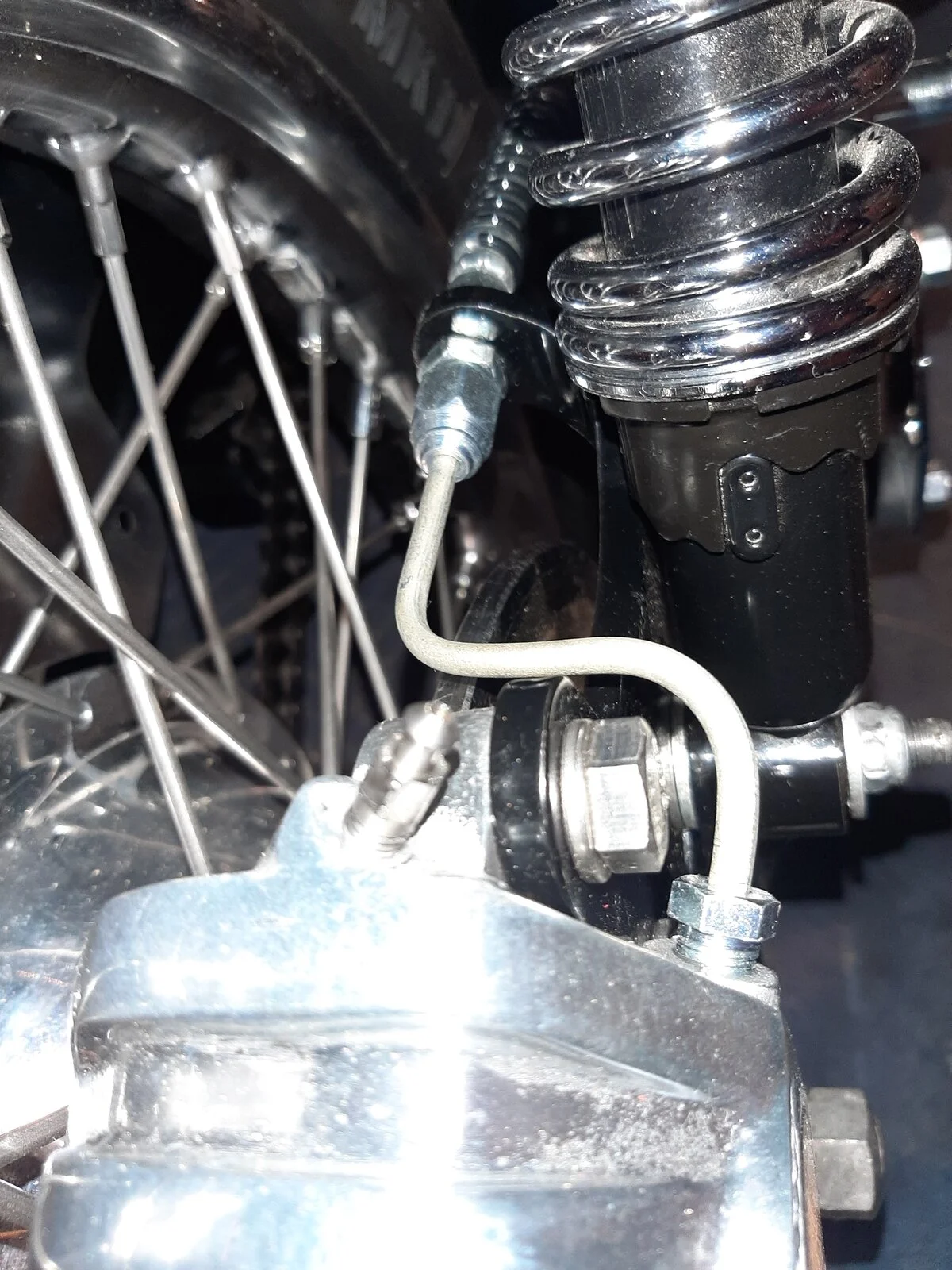 Found that a bundy pipe, one in the front and one at the rear were leaking brake fluid. Tightened both to no avail. They just kept leaking. Everything else on the front and rear brake systems were replaced with new. The only things I tried to save were the bundy pipes. I ordered new ones and finally got them installed. No leaks now.