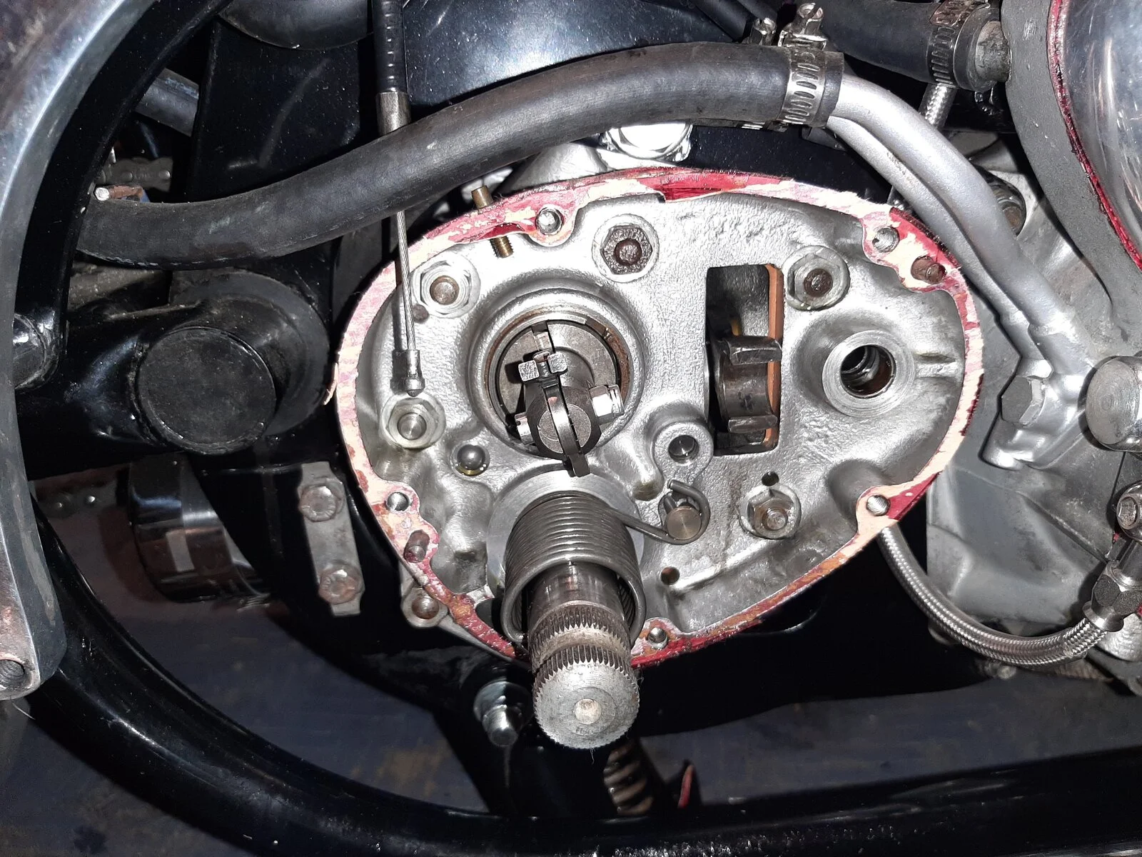 I put the gearbox in neutral and removed the outer gearbox cover and this is the position of the shift quadrant. It appears to me that it's not in the correct position. Agreed? Off to mow my grass, will remove inner cover to check the camplate position after. Suggestions?