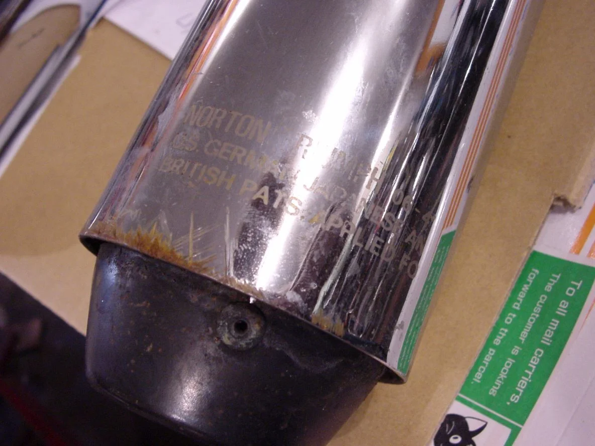 It has the original black cap / bean can mufflers on it , and while up on the lift the other day noticed some rust holes in the bottom of the mufflers, right past the transition from head pipe to the muffler. After poking around in the holes it was apparent that it was worse that just a dime size hole.