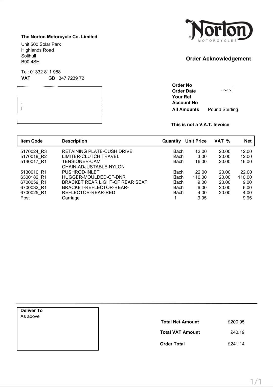 Yep, ok. Makes sense. The dealer orders it, in the UK of course, Norton are also not gonna know whether it’s for a Donington or Solihull 961. A parts enquiry from Aus is a bit of a giveaway.I'd probably say hold out until the dealers...sorry...sales partners are more settled and actually have the ability to order parts. See what prices people get then.