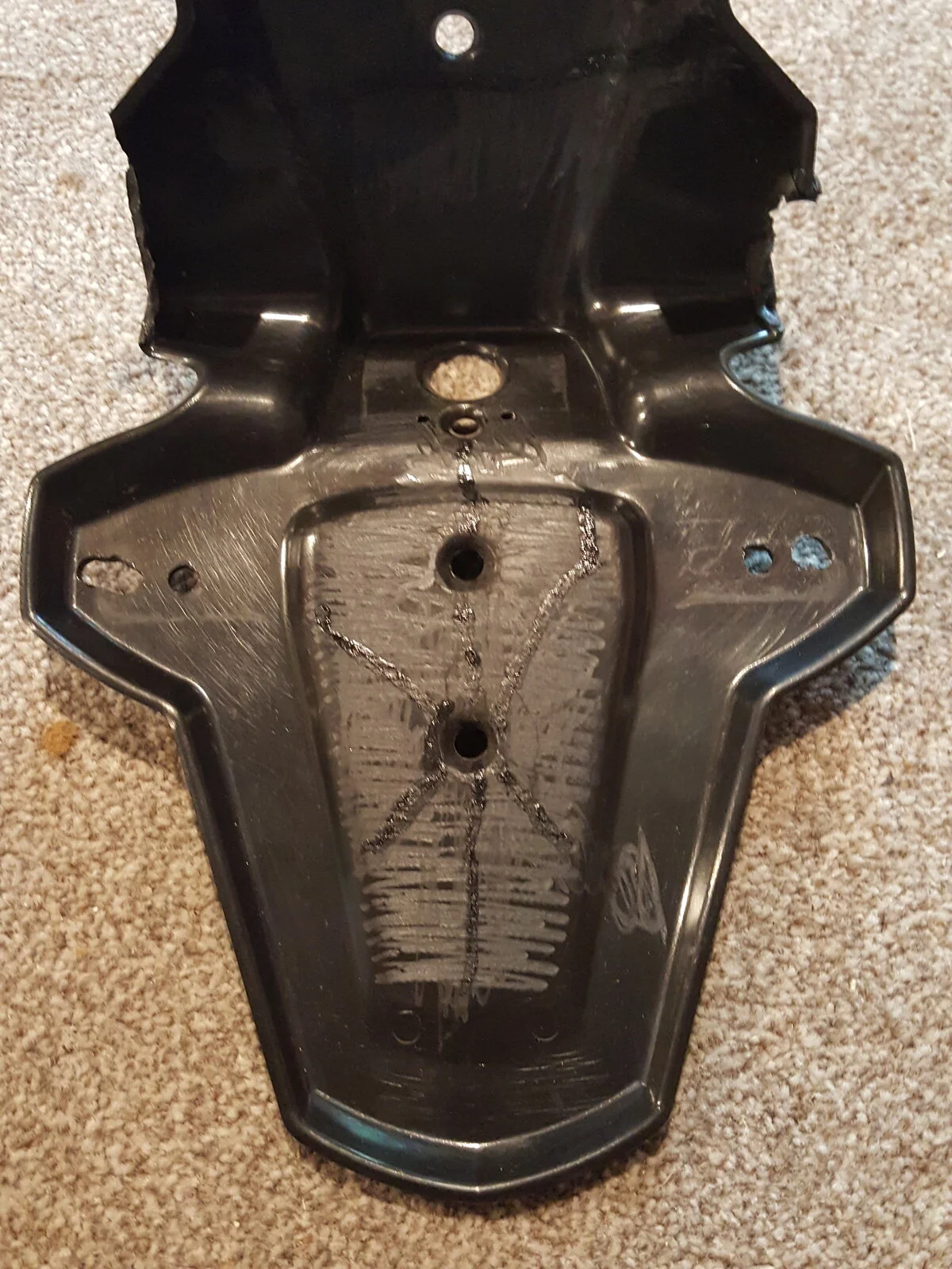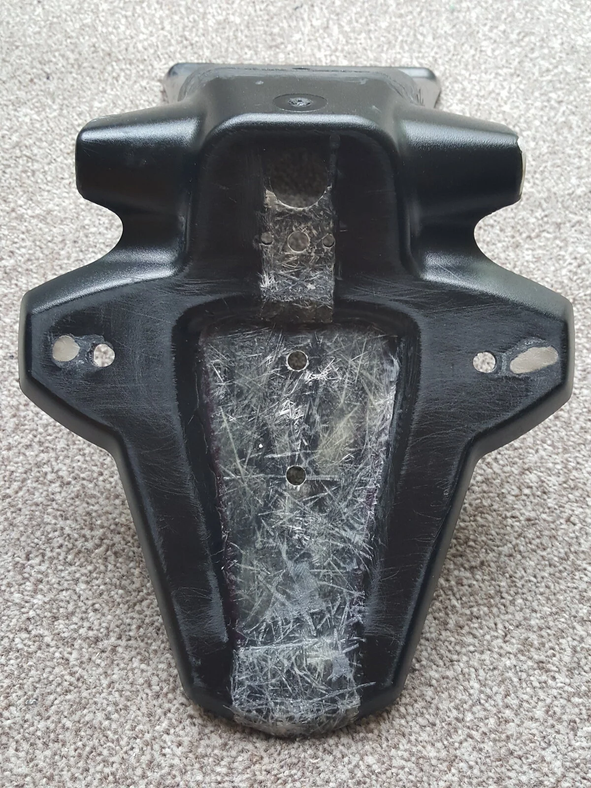 Having just returned from getting my 961 MOT'd and needing to replace the standard spec 'sail' number plate which I had to purchase due to ever restricting Government guidelines (ironically it passed on that number plate last year). I noticed that the plastic moulding which works alongside the metal bracket to secure the number plate, indicators and number plate light was showing signs of cracking.