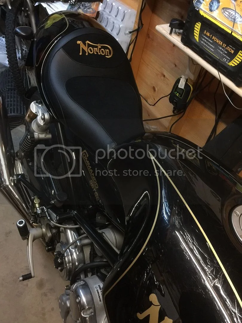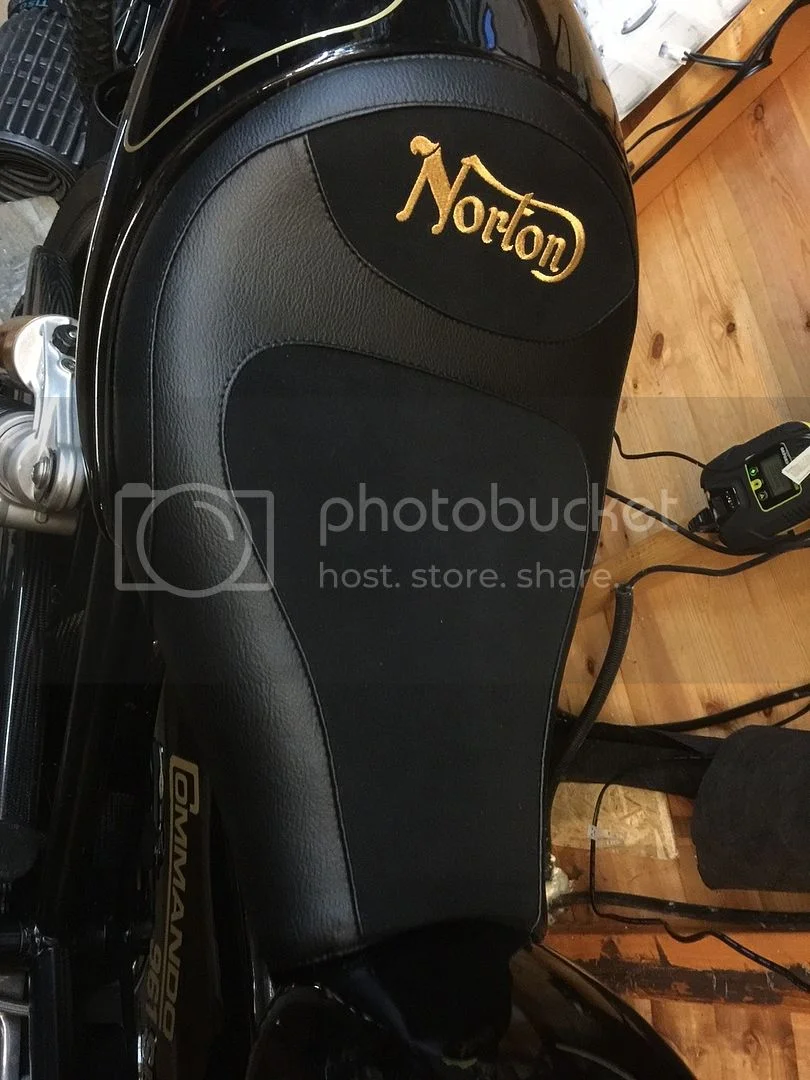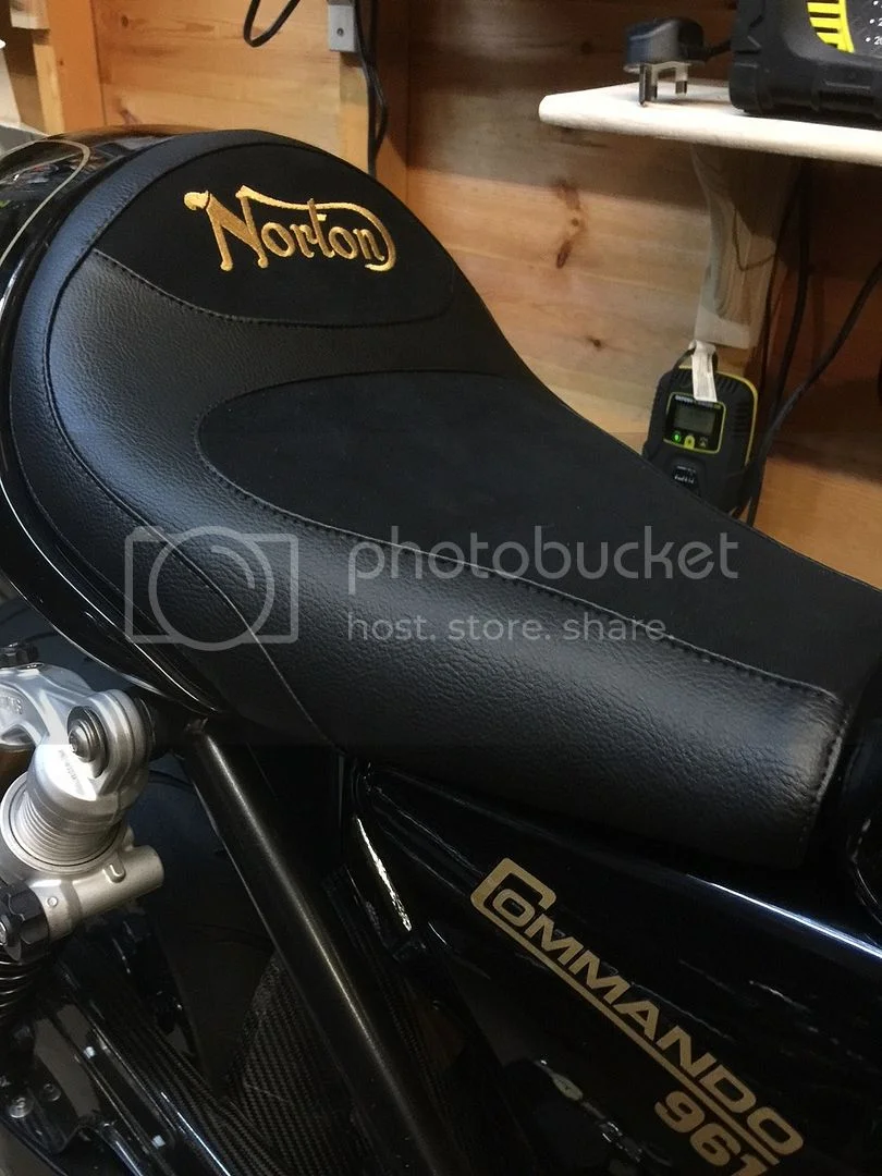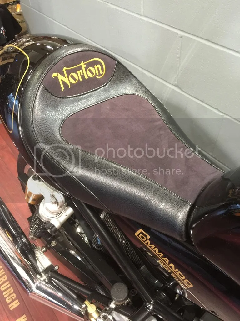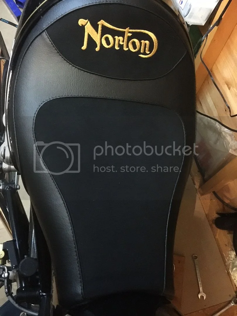If you look at the original pic in this thread (the one with the wine/lilac/purple-ish faux-suede) and the yellow "Norton" name, this is the picture I emailed them and specifically asked if they could do my saddle "the same". Now, in my book, "the same" means "the same"! ie with the same colour scheme although after speaking to the guy (email-wise) I agreed it would be better with gold thread for the embroidery... so this (latter) part was ok.