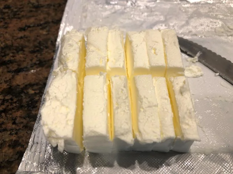 Slice up a block of Philly Cream Cheese... (1/2 block shown)