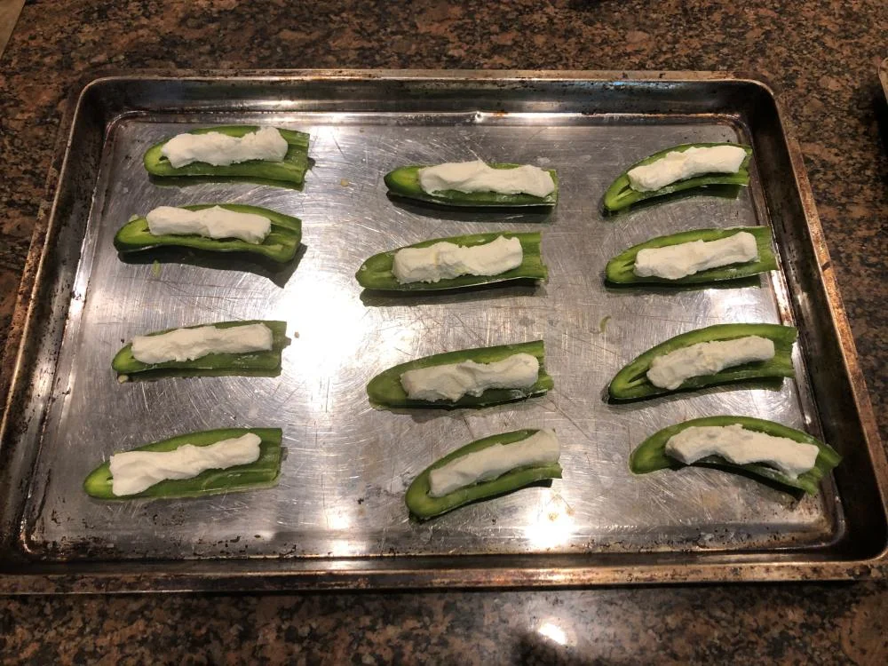 Doing this today for our Monthly Game night..Slice the peppers open and "gut" them