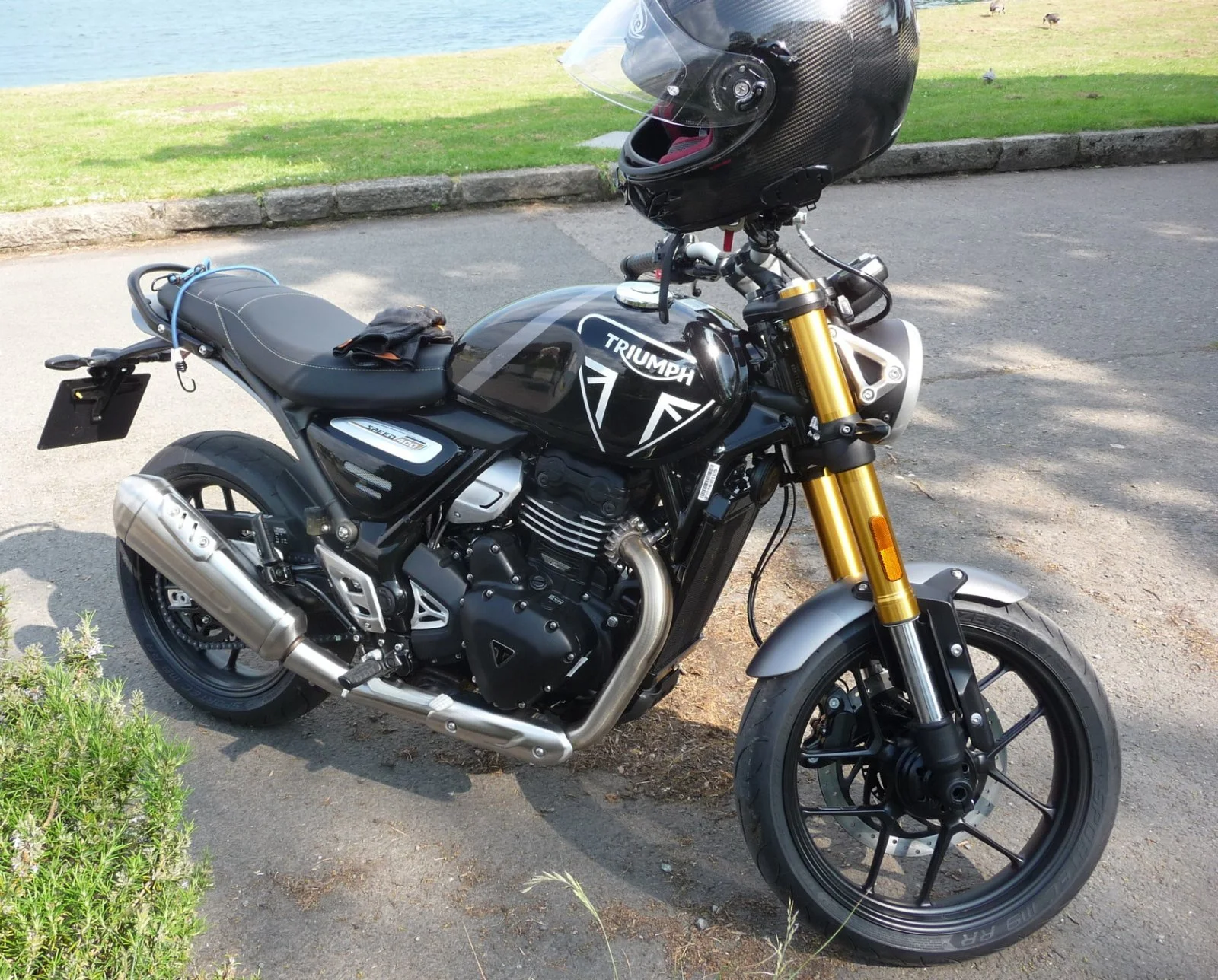 Was surprised that the passers by were more taken by my old shoe than the new Triumph.
