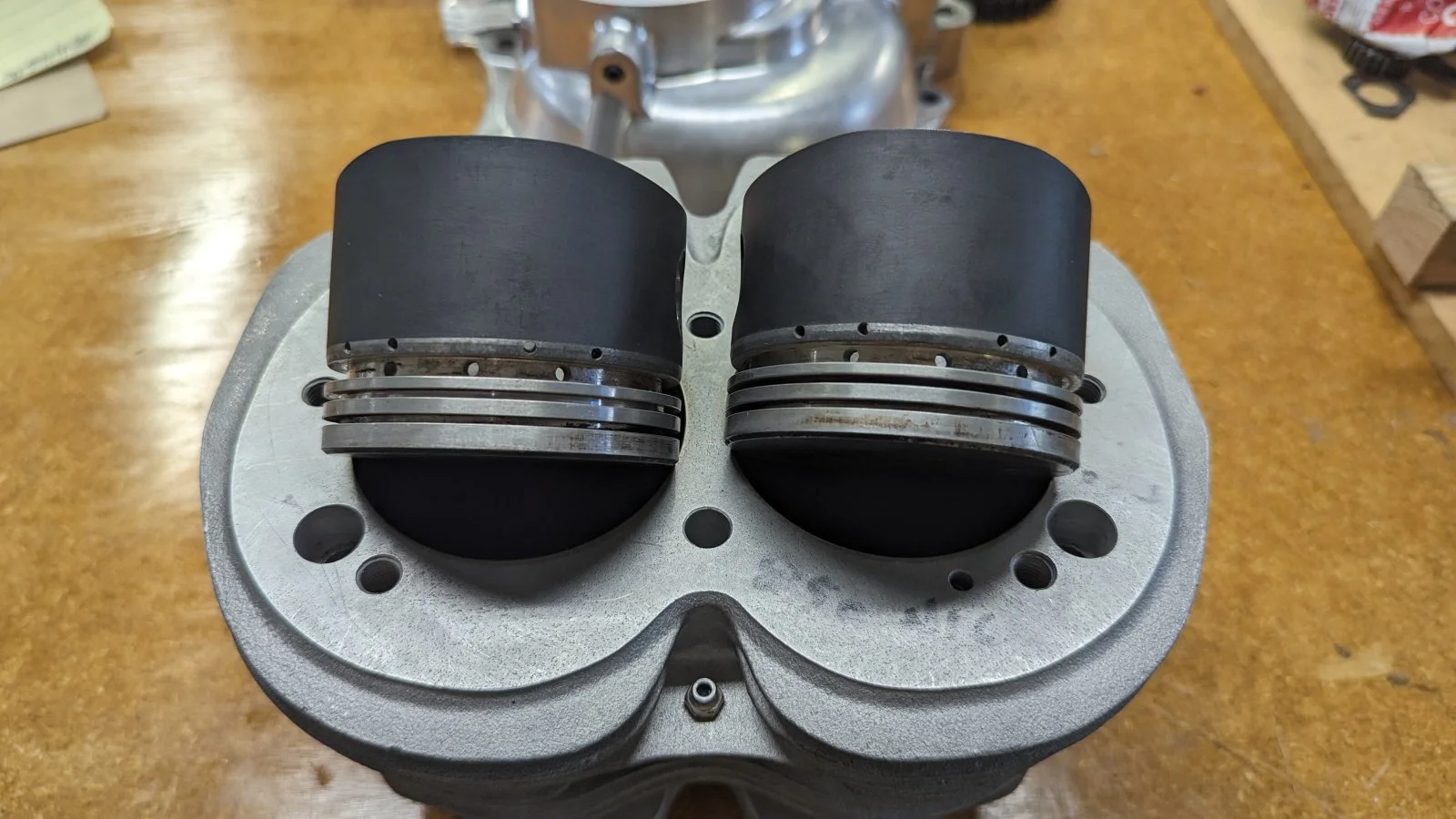 Fitted stock length (heavy) Carillo rods so that I can use "heavy" stock pistons (skirts anti-friction coated by Line2Line) running at 0.002" clearance (to coating) in Andy Molnar's / TGA nikasil ceramic coated aluminium (there's an "i" in it..
