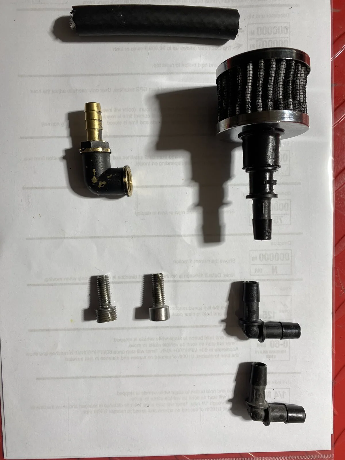 I fitted the M8 end of the elbow to the oil tank breather pipe and the other end to 10mm pipe and breather catch can / filter.