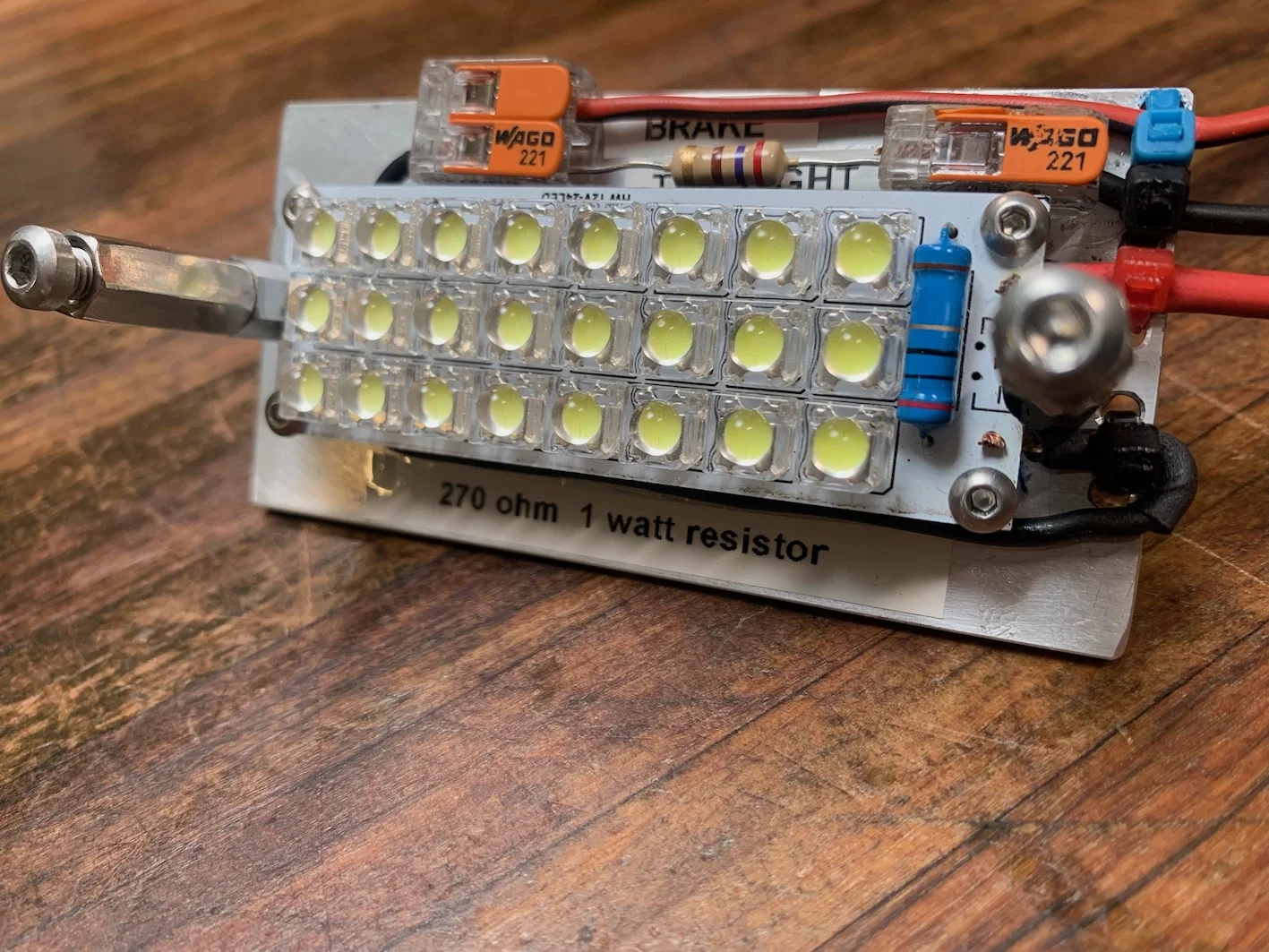 Next step finding an appropriate resistor to give that effect for the tail light on the bike.