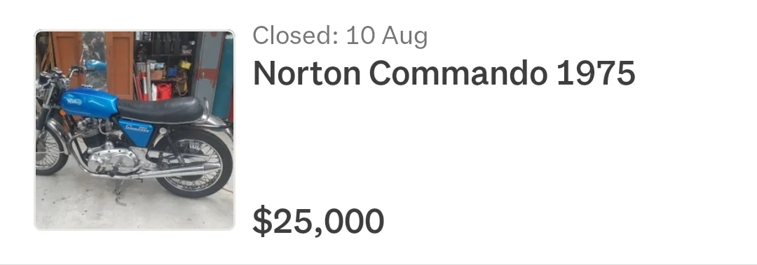 I would rather have the bike than a stack of paper notes...money is easily replaced...bikes not so much...Lots of high priced Nortons around but are they getting the money they are asking for them, but prices for any bikes are all going up same as everything, as fuel prices go up people are looking at things that are cheap to run but paying a lot for a classic bike who knows, maybe a collector with to much money, or someone who has always wanted one but didn't want to do the work on it, when I use to look at the prices of Norton's some kept being readvertised over and over again without any bids, plenty of lookers and prob a lot of offers but still readvertised, sometime taken off but readvertise a few weeks or months later.