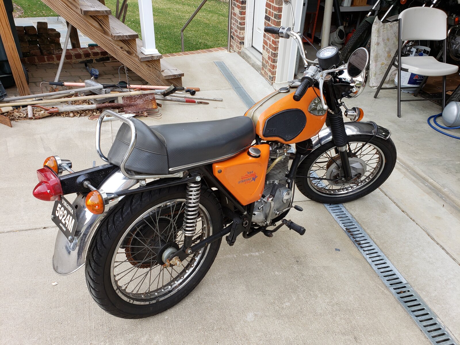 While the tank is off pending engine work, I took a look inside and was dismayed to see a fair amount of rust. So I've had it full of a white vinegar mixture and now a brush inserted through the gas cap will easily brush off the rust revealing nice clean metal underneath.
