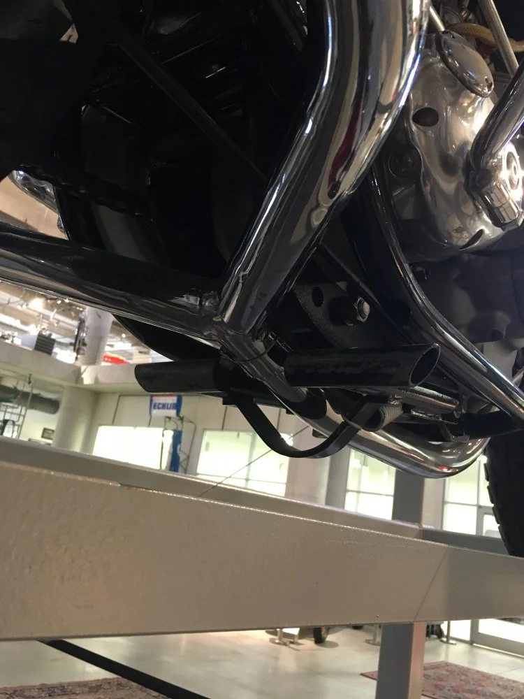 F.E, this exhaust system certainly looks good, although I have my doubts if the center stand will work in this forward mounted position.