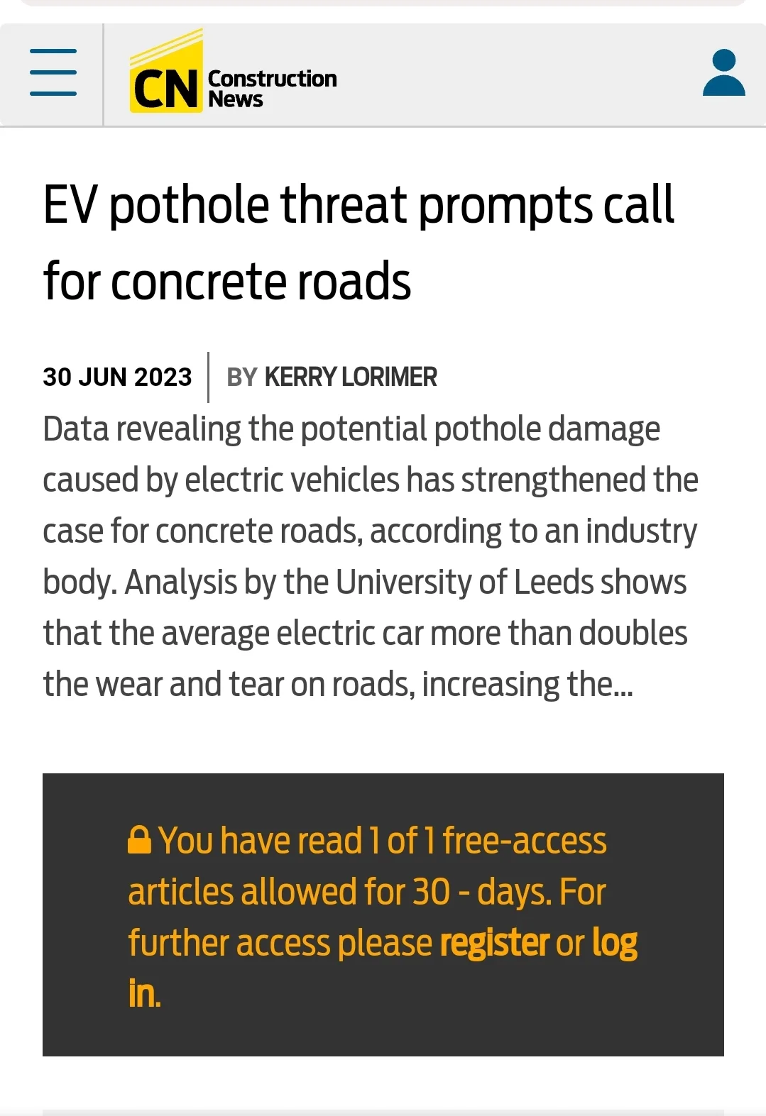 Data revealing the potential pothole damage caused by electric vehicles has strengthened the case for concrete roads, according to an industry body.www.constructionnews.co.uk