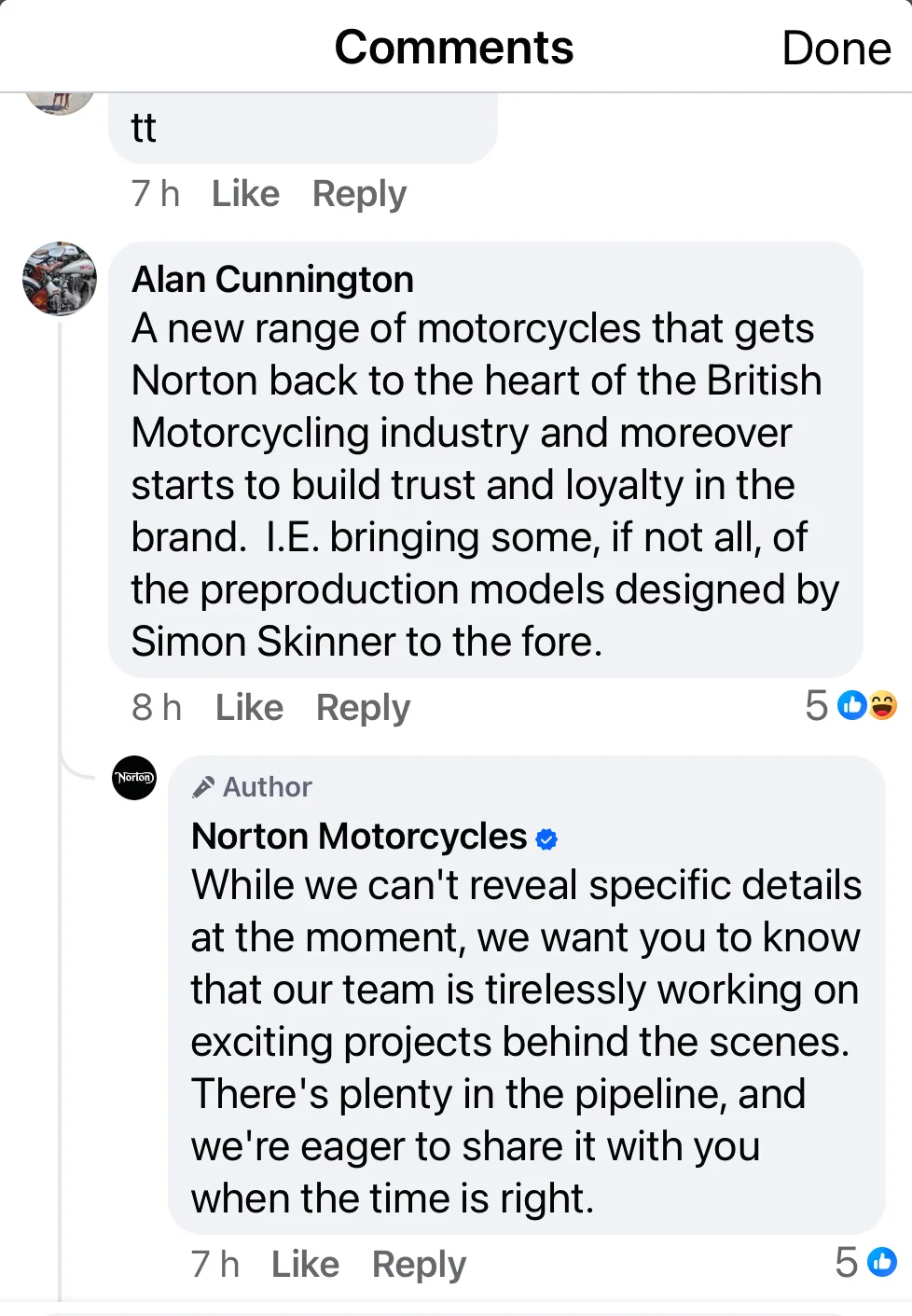 Unfortunately I think they see themselves above Triumph. You wouldn't expect Aston Martin to release a rival for the Ford Fiesta...and this is what I think Norton like to compare themselves to.If only I think it’d be great if they got a single out, with the Himalayan going really high tech it’d be interesting if they did a few back to basics 500 singles an 125s to get new riders on the brand that are actually affordable with some of the bikes in TVS’s range you think it would be the easier option to get a bike to market based on the 310 platform.