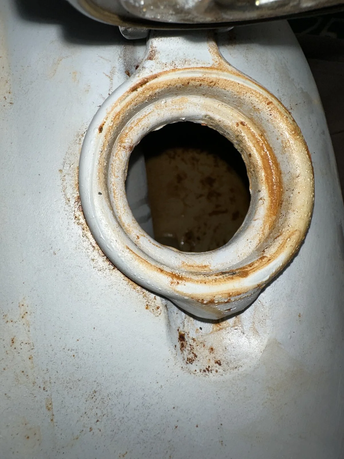 Underneath the tank somewhere, really isn’t clear where it is coming from and I thought about a thin coat of JB Weld but that won’t hold up against gasoline. I have to take it to a welder for a permanent fix.