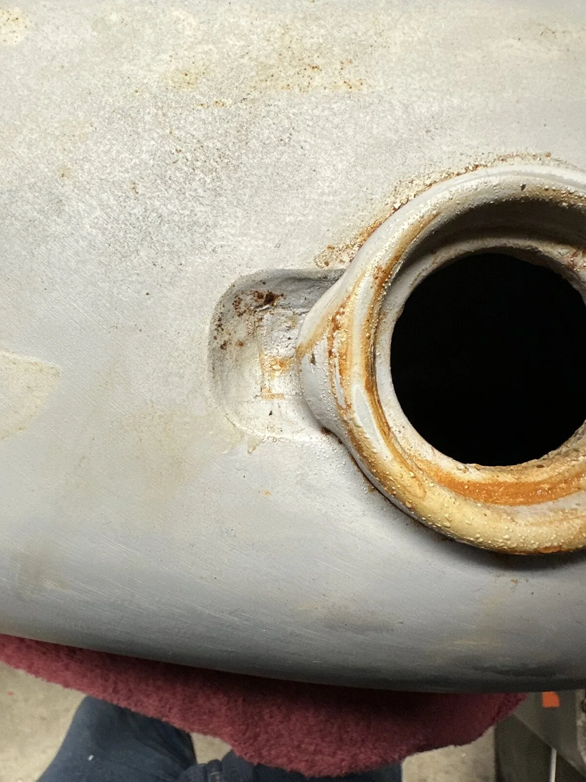 Well, at least there’s no paint job to get ruined by the welding. Hopefully the leak will show up with a few pounds of air pressure and soapy water.