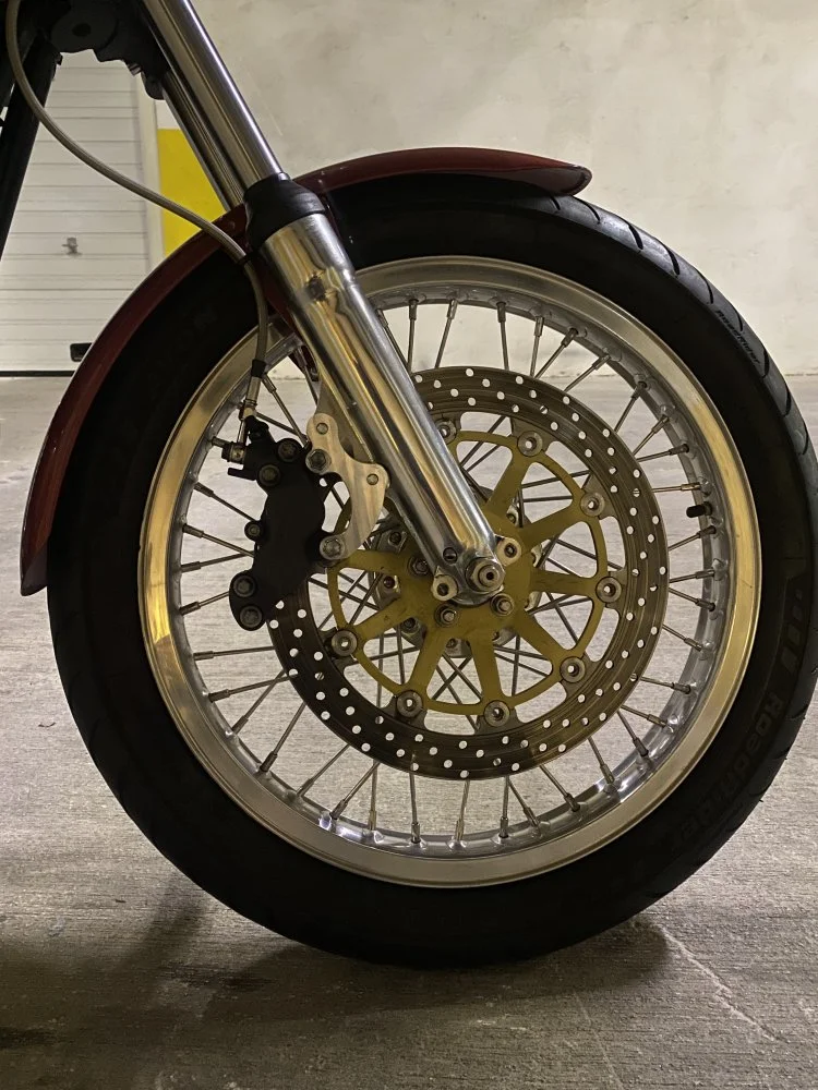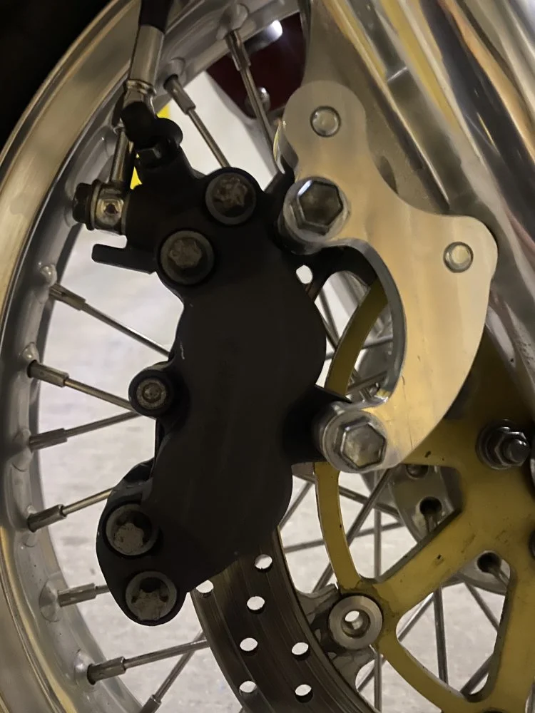 While I had the fork leg off, I had another bracket made up for a Nissin caliper that I picked up from Fbay for under Eur100 off a crash damaged 2017 Z1000 and paired it with the same Nissin MC on my other bike. Great combo with awesome feel when squeezing the lever.
