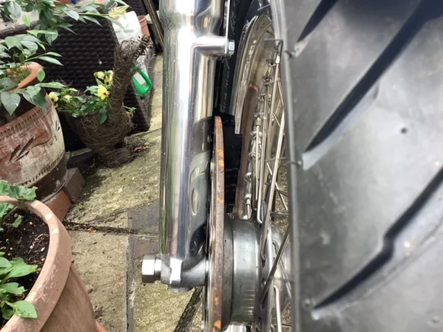 Bike has come back from repairs ( insurance) things not right .has anyone got a photo of a RGM 12” disc distance from fork leg as mine is nearly touching fork leg ! They built the front wheel with wrong offset ,when I complained,I think they moved wheel hub over see photo of other side not meant to have a gap ,thanks in advance to anyone who can help.