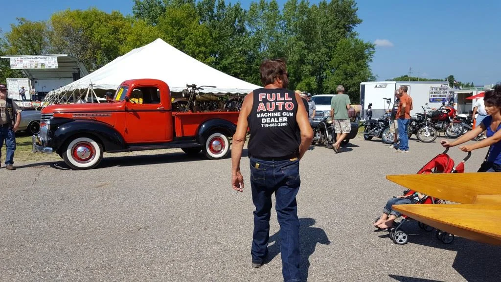Was at a recent GearHead get-together and my head snapped around when I saw the words "Full Auto" - fully expecting a Nortoneer to be wearing it. Those words evidently have additional associations above and beyond those that the typical Nortoneer would make. But to assure I stay on the topic of motorcycles, I did see this old girl in the background of the Full Auto image.