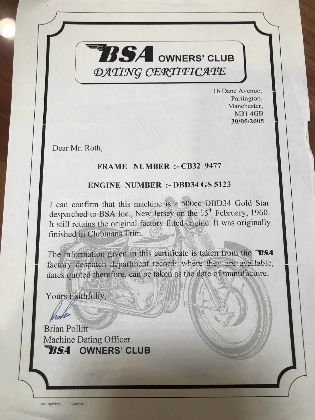 Matching numbers frame and engine, of course. Authenticity letter shown.
