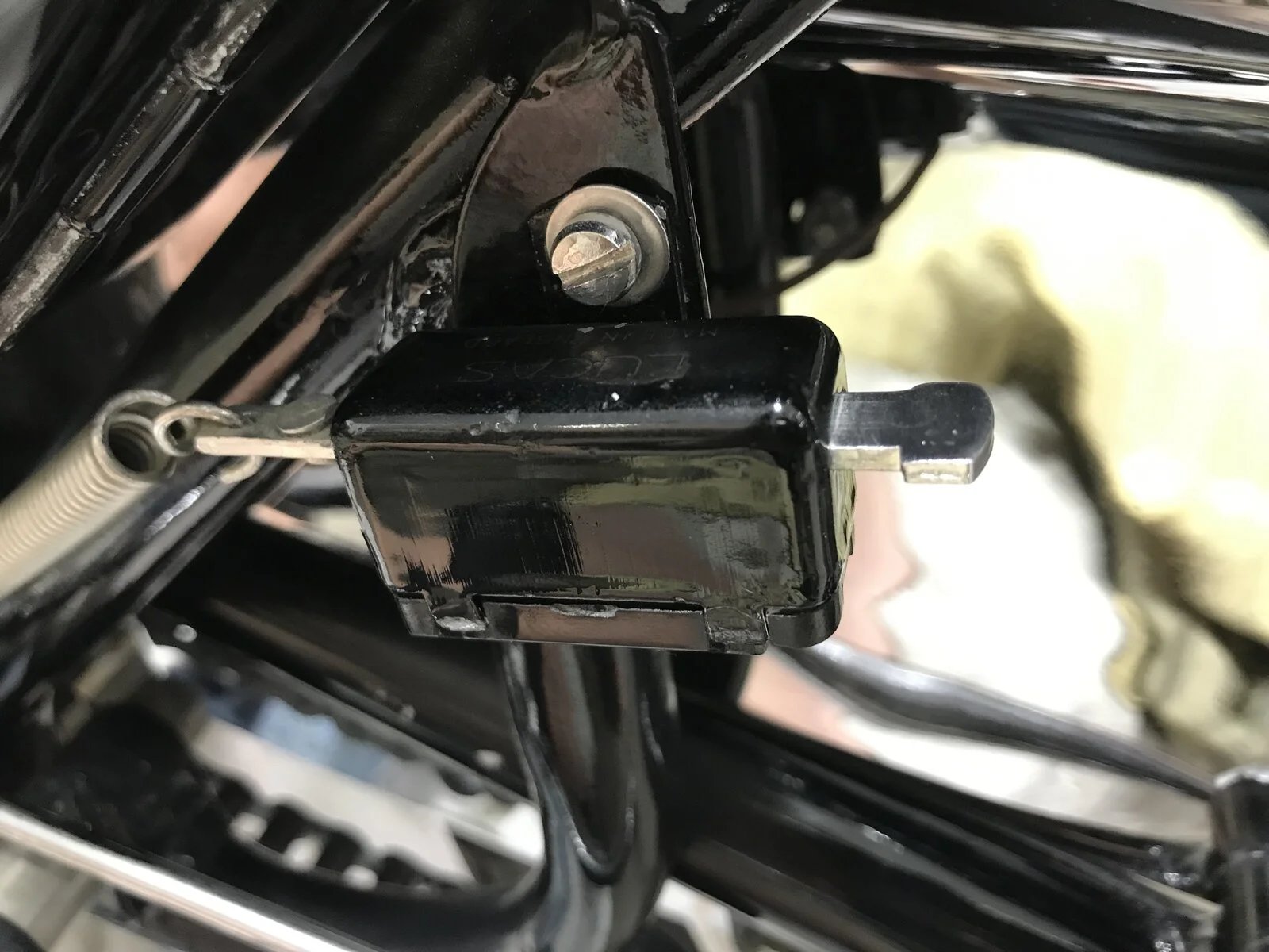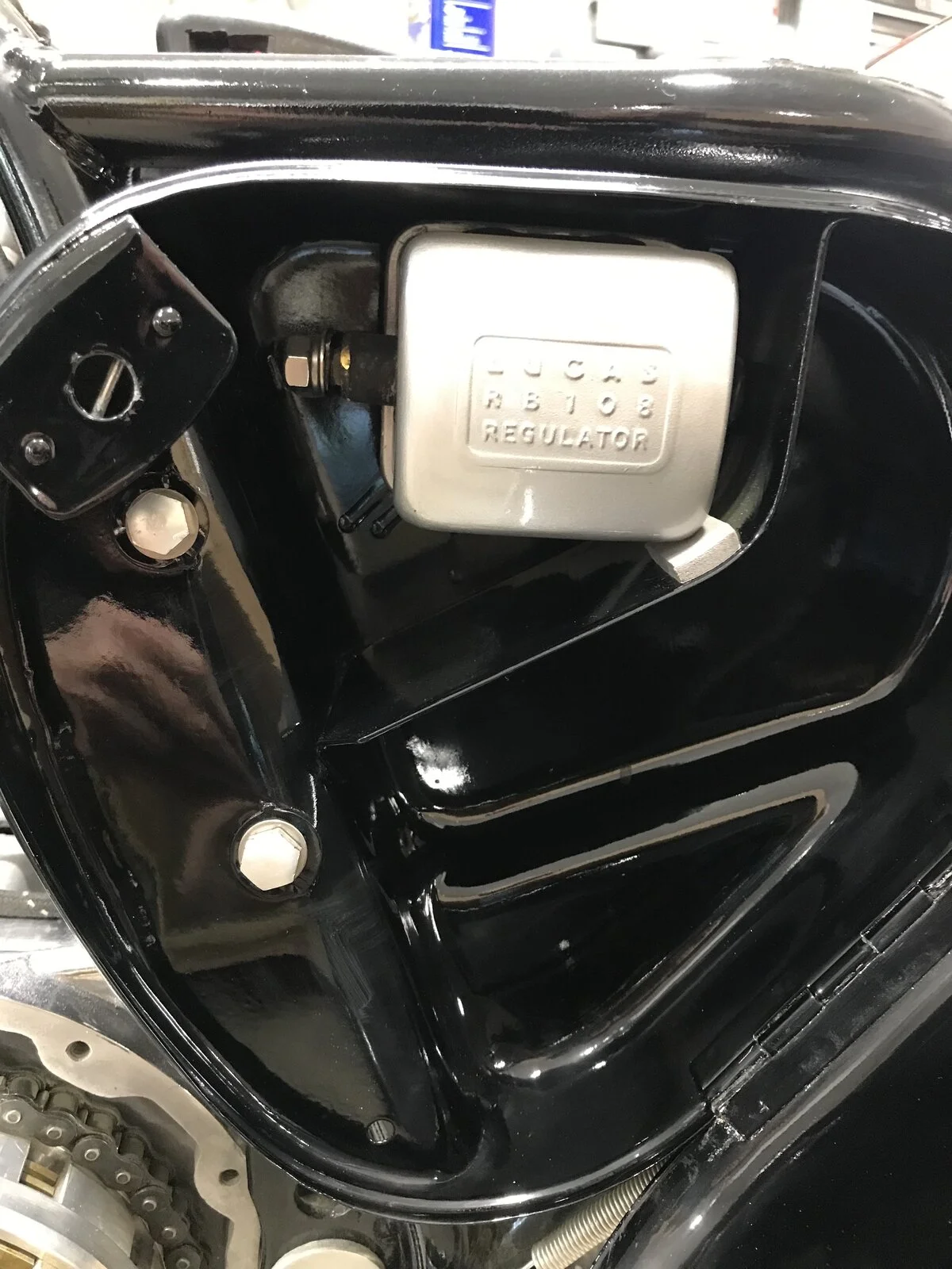 4. SRM 12v electronic ignition hidden in OEM Lucas voltage regulator in tool box.