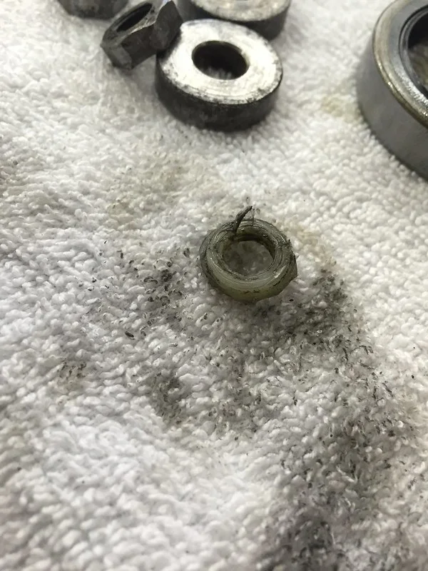I also will need to replace the nuts on the insert since they really fought me coming out. The other thing I will need is new sealing washers which go on fork bottoms, I wish I had known this when I was at Steadfast, without them I'll obviously have big leaks. I purchased some 10WT fork fluid but it sounds like 20WT is the way to go. Also, should I spend the money on "progressive springs" for the front?