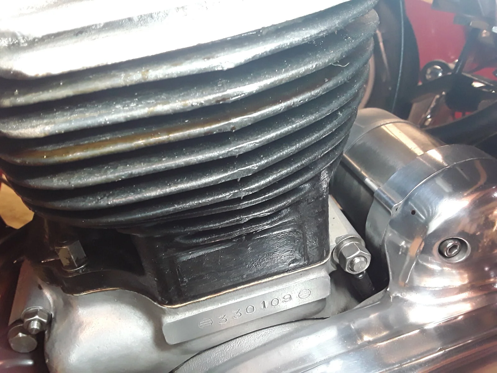 I have an oil leak, which looks to be coming from the head gasket region. 1975, mk3 850, which I've had since March. I think it has probably always seeped from the gasket, but was masked, I also had leaks from the rocker covers (now fixed) and a lot of splattering from the oil tank cap (also done). The recent fix to the oil tank cap seems to coincide with an increase in the rate the gasket area leaks, maybe.
