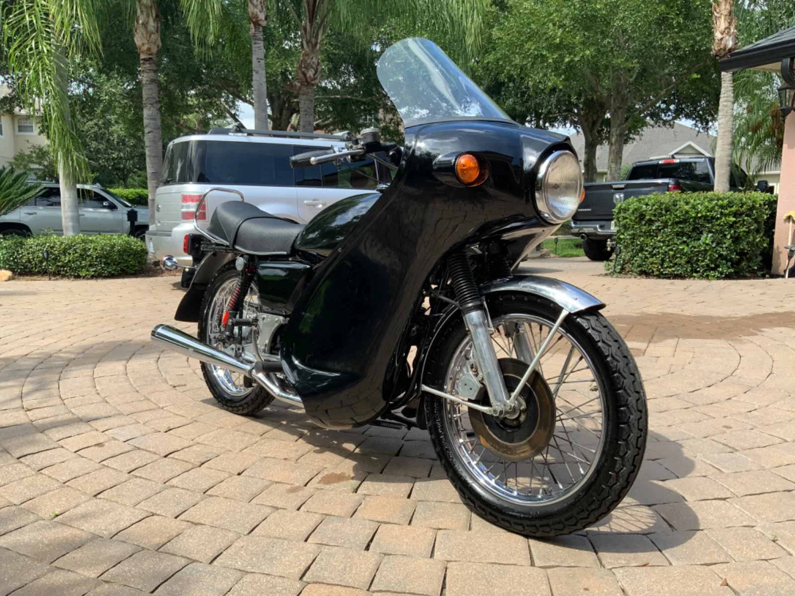 I have a dunstall fairing on my bike. I know it gets some weird looks from other norton owners but it keeps the wind blast down at 80 mph so I like it for that. Your fairing is kind of cool, and kind of weird (like mine) but I'd love to ride behind it to see how well it works. Although I am pretty sure I would remove it because a Norton is a sport bike and that fairing is more of a full coverage touring fairing. I think some guys might love it, but I ride my commando in a sport bike fashion so it's not appropriate for my style of riding (twisties)
