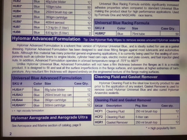 Permatex formagasket started smoking & bubbling at 250 – 300F and failed.