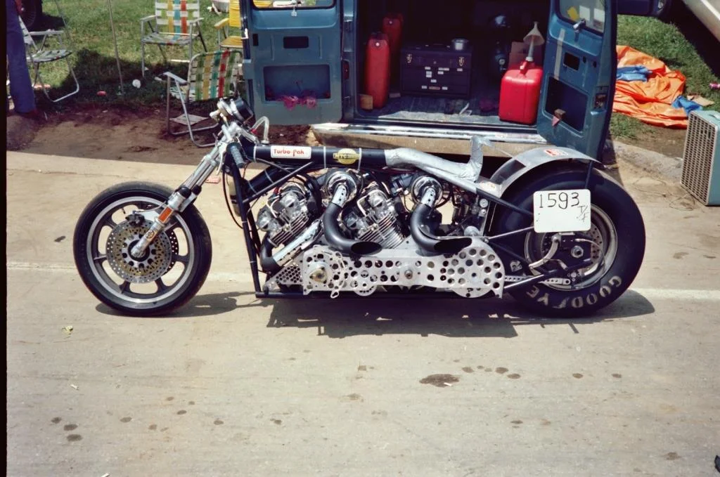 Fred Eikers land speed 920 on Nitrous (below) puts out 150 hp. It spun the R wheel at 135mph on the Bonneville salt and crashed but I think its on the street now (with nitrous). It has a solid crank, longer steel rods and lighter pistons to help keep it together - but the motor is holding up fine.