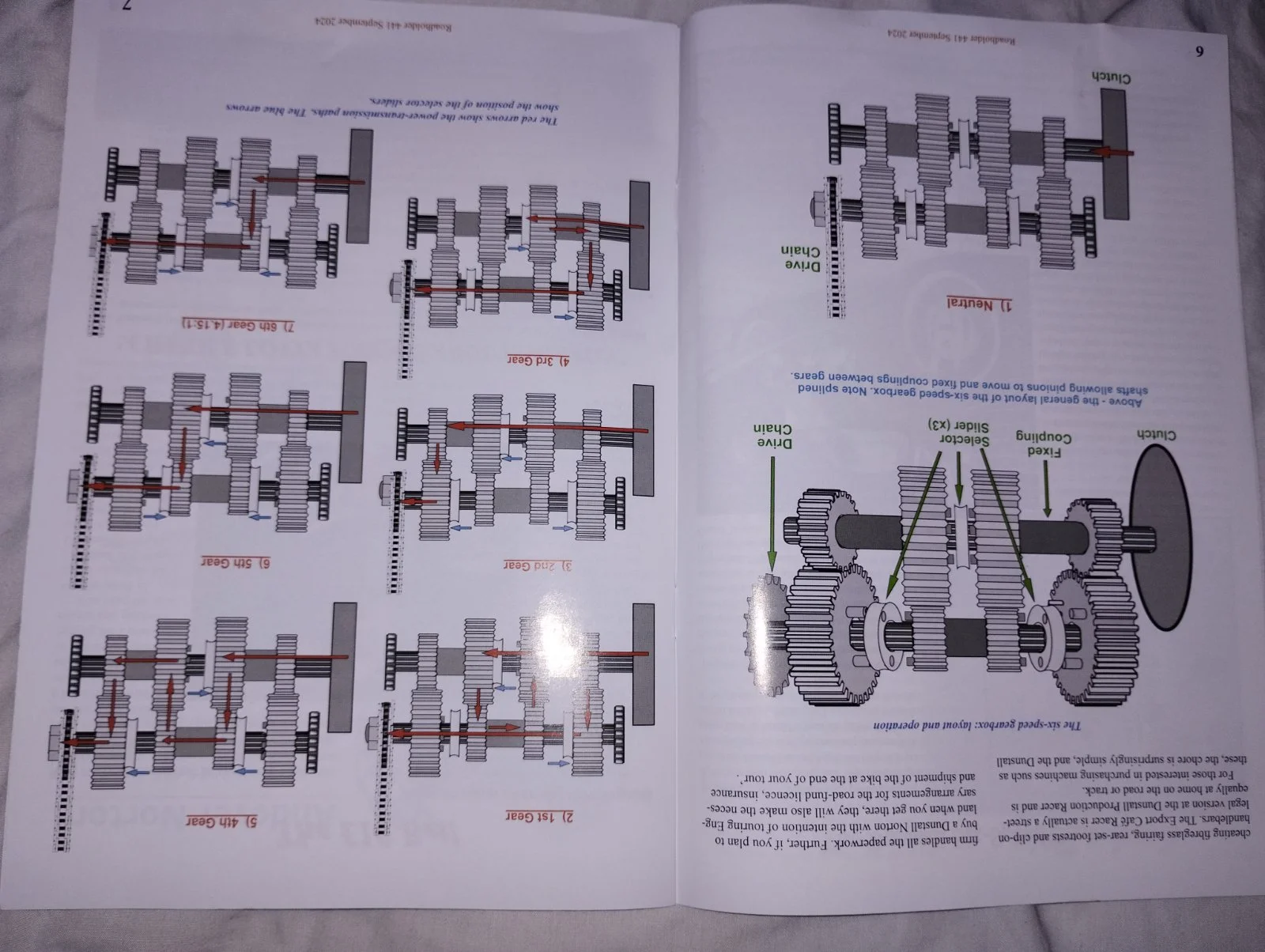 The pictures also show the clutch on one side of the gearbox, but places the final drive sprocket and final drive chain on the other side, so this gearbox would transform the resulting bike a bit from the left side clutch and left side drive chain that we know