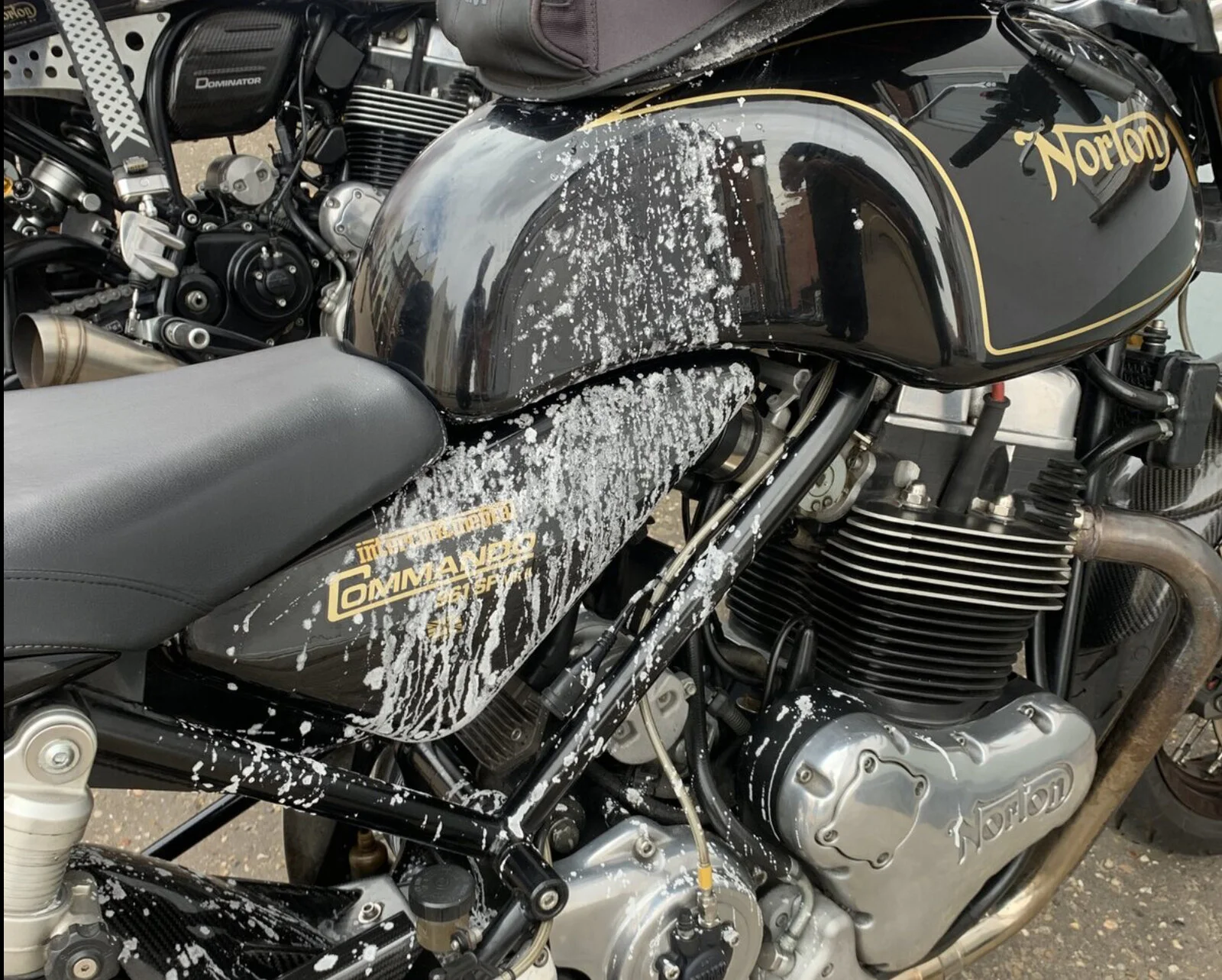 So, because @Stephen_Spencer and his impossibly clean 961 photos shamed me into detailing my bike I now have a small section of microfibre cloth melted onto my exhaust.