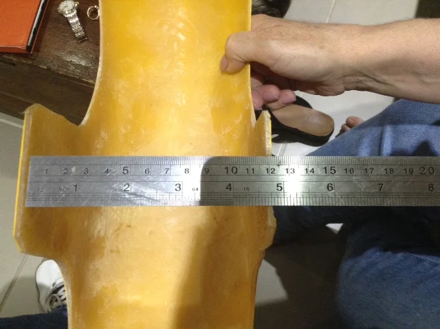 The front guard mounting bosses on the forks are 128mm apart. As I don't recall any washers/spacers on either the JPS or early type Prod Racer front guard, I can only assume that these particular guards are made to fit this gap. Don's guard is 114mm wide at this point. My tyre is 112mm wide when mounted on said 2.5 inch rim. Ergo, ipso facto, and amongst other things and all things being equal, I'm prepared to shell out for one of these guards, pretty much assuring myself that it will fit when offered up to the front end, using simple mathematics as my guide.