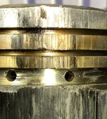 The other not so good news is the piston, have a look at the pictures below. There's been intrusion into the oil ring land and the front of the piston has a smear going all the way to the top of the piston, with a small smudge/nub sticking above the piston edge height!!