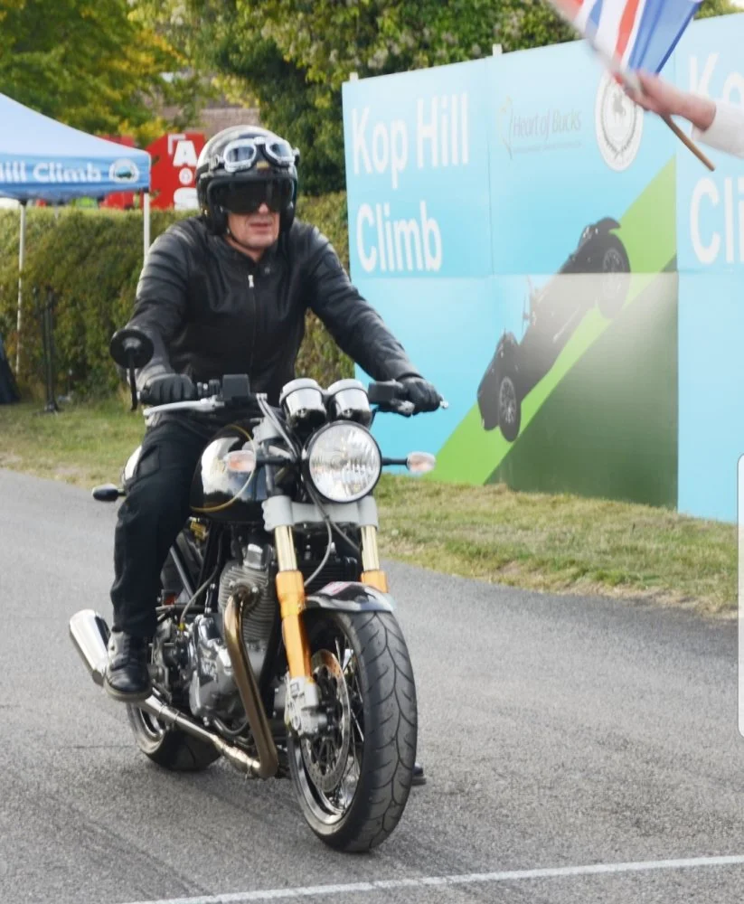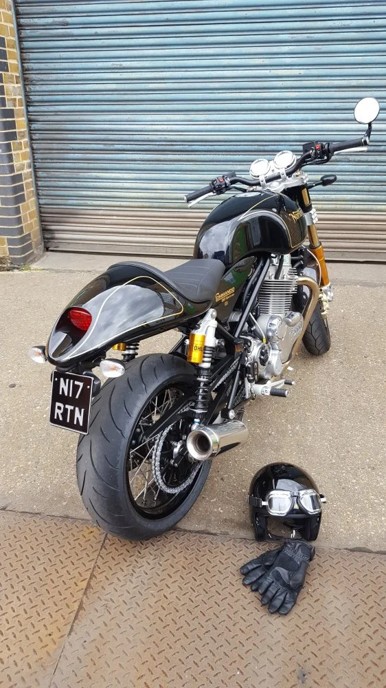I am totally into the retro rocker style - Lewis Leather boots with cream sock top, Goldtop 617 jacket with chequered silk scarf, Goldtop gauntlets - and I commute like this to work on my CR as often as the UK weather allows. I love my old Davida Jet helmet with modified Climax 510 goggles for a Sunday pose but I have to make compromises for comfort on my commute;