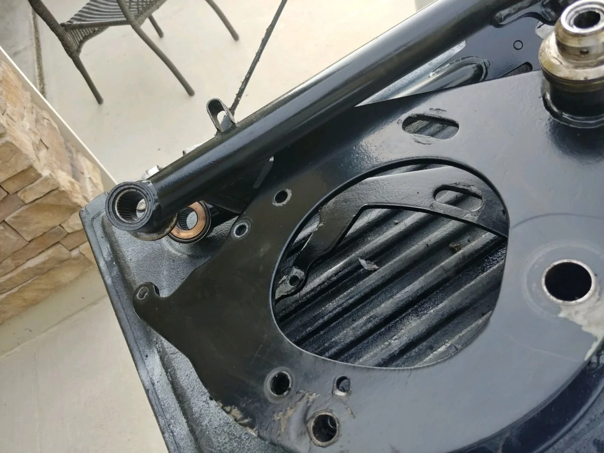 Finally. Back in 2004 when I rebuilt the bike (to bare frame, motor, GB, every single thing to smallest part, etc) I installed "needle" bearings inside the rear swingarm; "my thinking" they would be better. (as read and "advised" from other Norton "experts.") At the 2020 "Nortona" meeting, "Windy" noticed my kickstarter going horizontal (thanks Windy!) --- during first gear engage from dead stop. Oh no ... thank GOD I made it home ok, cause I was paranoid for sure. Time to install my rebuilt 850 motor, rebuilt GB (by https://classicbikeexperience.com/) install new iso mounts, check swingarm, etc, etc. . So much has to be removed to change a complete GB, I figured "in for a penny, in for a pound." What a huge PITA ...