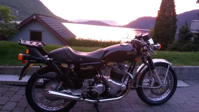 These are the tapered type Givi that I found to look the best for the up swept-ed exhaust on most commandos and will work on my Combat. I had to make some adjustments to the holes as the key to disconnect the hard case was too tight.