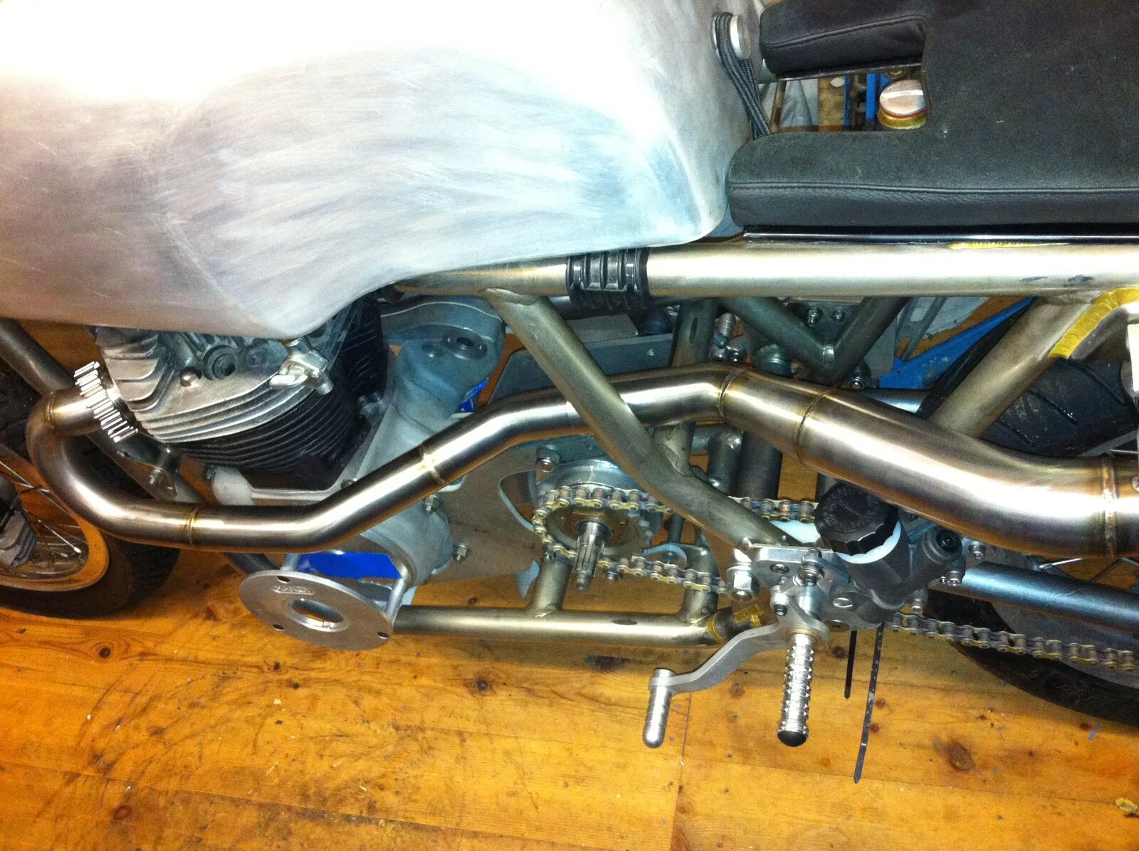 On the noise front, the Maney system has always been noted as 'noisy'. Single pipes have the benefit of two cans to help with that. Nigel is pretty close to the racers and knows all about meeting UK noise regs.