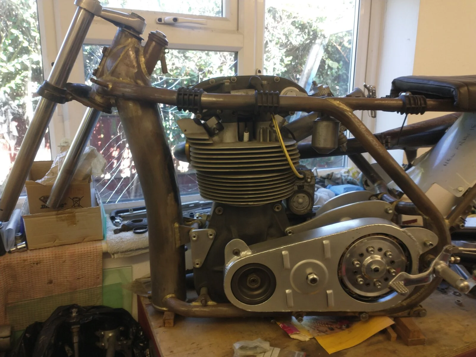 The main reason a Manx usually handles better than a Triton hen they both have the Manx frame and 19 inch wheels, is the position of the centre of gravity. A manx feels much more positive when you gas it hard in corners, and you are less likely to drop it. When you gas a bike in corners the front lifts and the trail on the steering increases. If the bike has neutral steering, it feels OK, but can never gas it as hard as one which oversteers. Fearher beds have as much trail as they can get without increasing the rake - the yoke has minimimum offset. If the bike is light in the front, it will tell you to back off. With the weight forward, it taskes more power to lift the front, so more goes out throght the tyre cvontact patch while bike stays more upright.