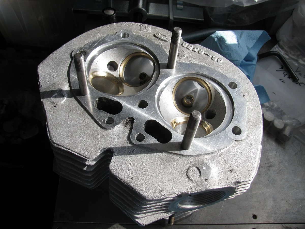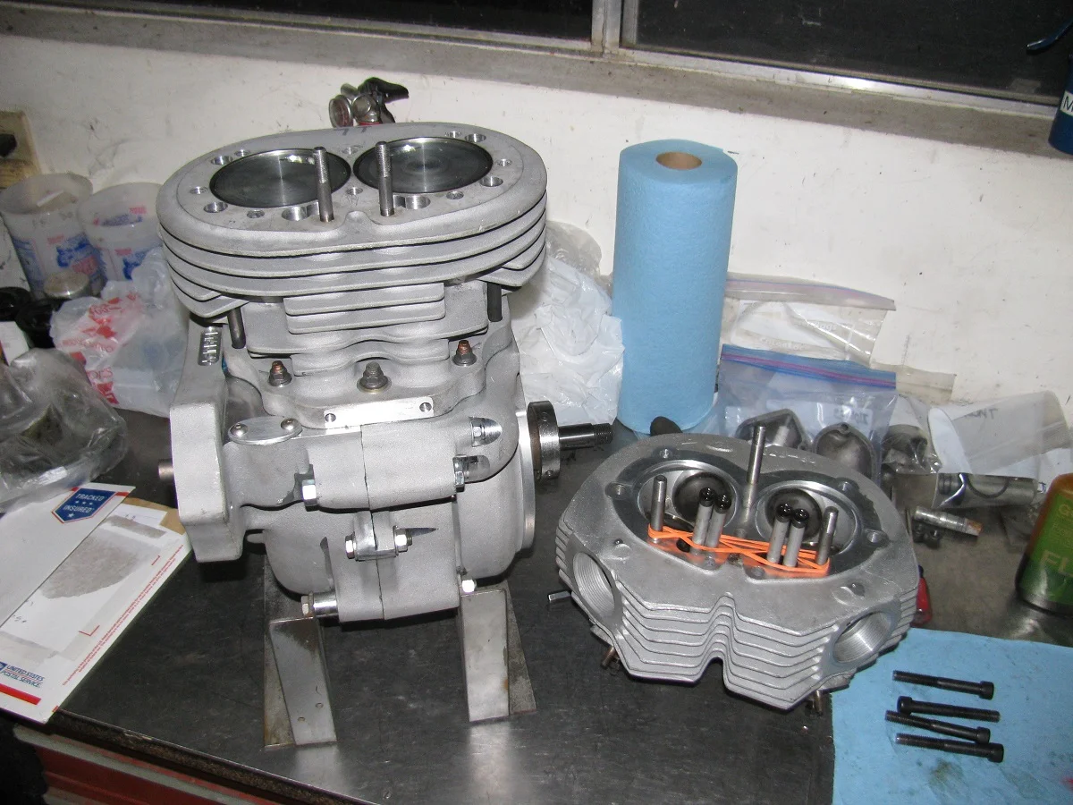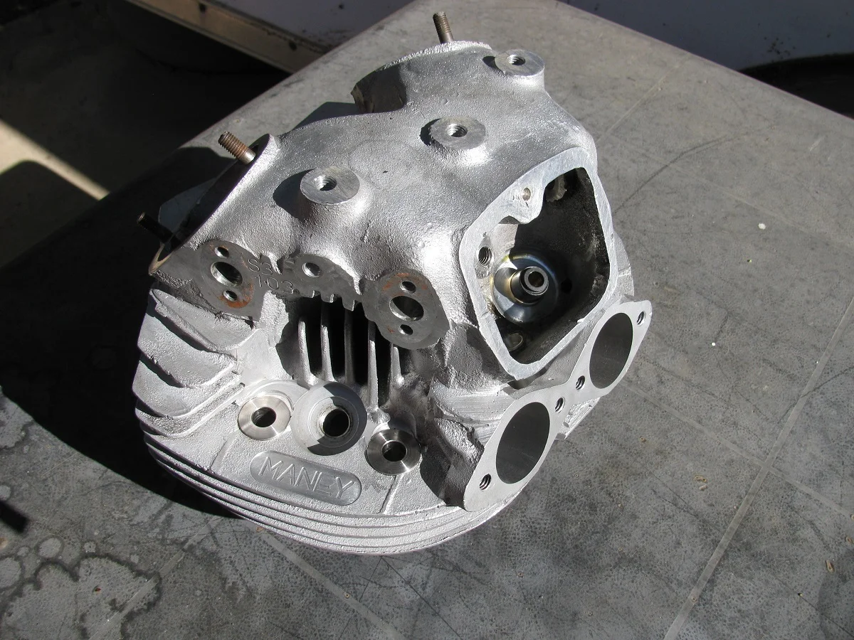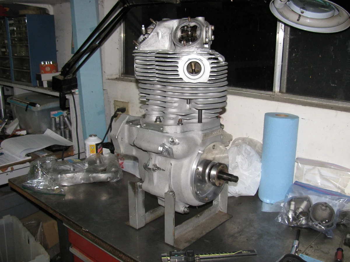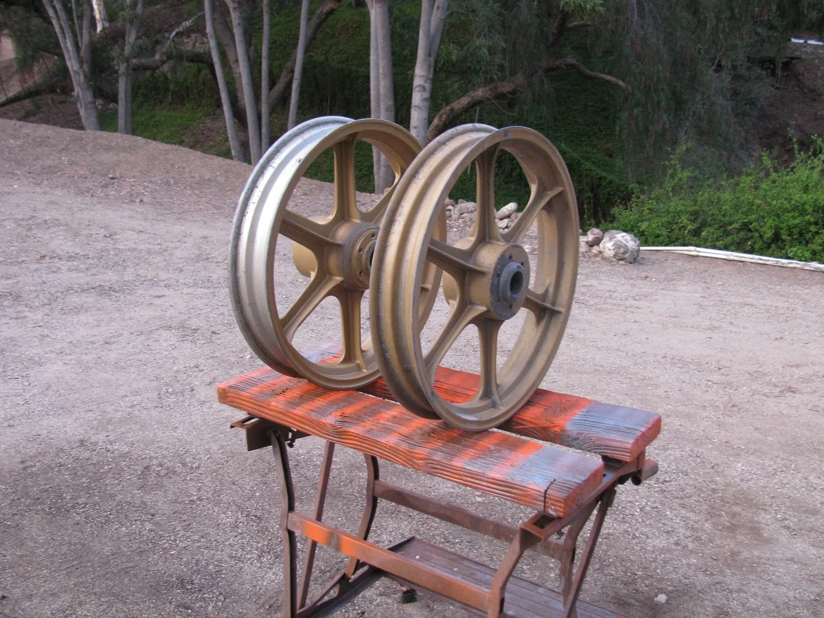 I broke out some of the other parts that I'm almost ready for. These are the EPM mag wheels I plan to use. They are period mags, originally on a TZ250 race bike, and later on my PR race bike. They are 18" diameter, with 3" width rear and 2.5" front. Being something like 35 years old, they are meant for tube type tires. When I was racing with them, I used tubeless tires with no problems, but for the street bike I plan to use tubes. They are waiting to be media blasted, inspected, conversion coated (Iridite) and painted. I'm sticking with the gold color to match the tank lettering and some other bits.