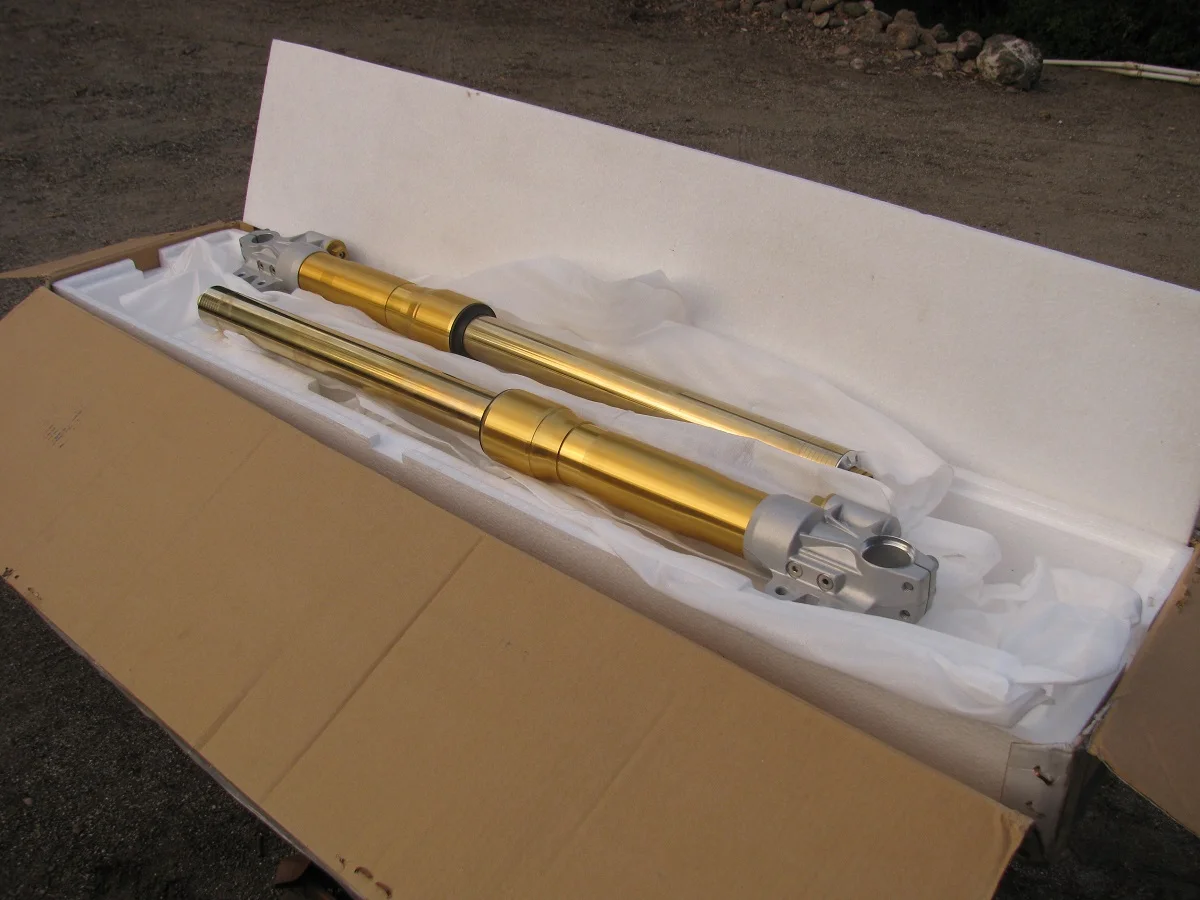 And these are the forks. They are Ohlins superbike forks, the same ones Kenny Dreer used on some of his first 952 bikes. I still have to make some triple clamps for them, but I'm getting pretty close to being able to have a rolling chassis with engine.