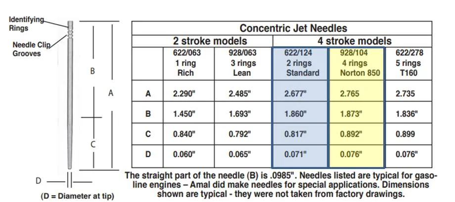 3. Fit new, standard, .106 needle jets – they will be worn – and, if in doubt, new 4-ring needles – they last much longer because they are fairly free to rotate, and so wear more slowly.